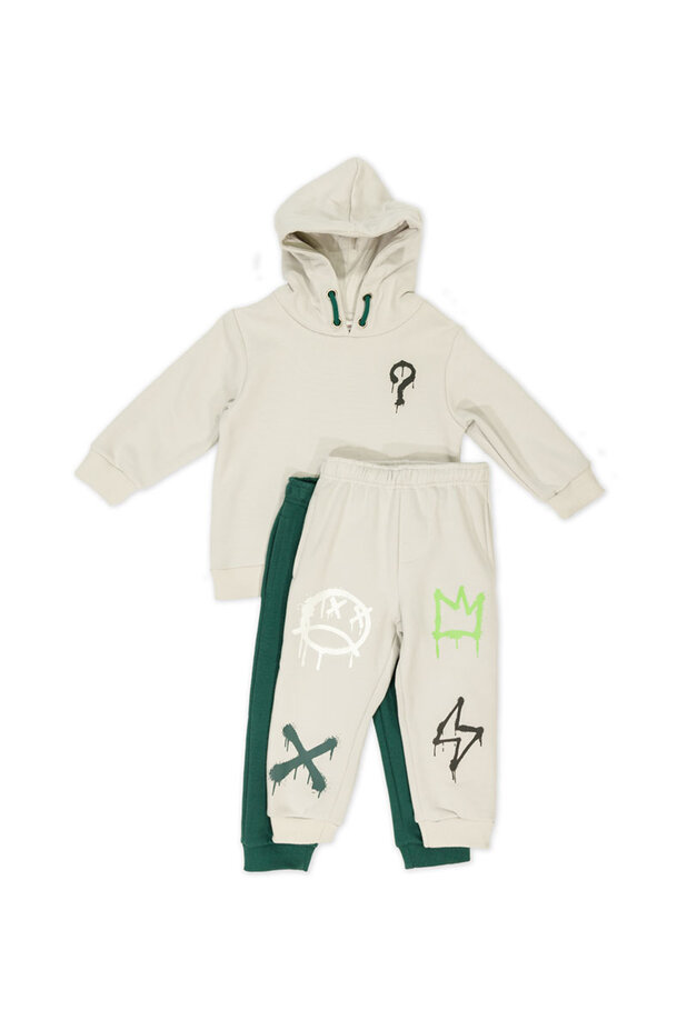 Φόρμα φούτερ 3 τεμ. 45-825 εκρού- κυπαρισσί