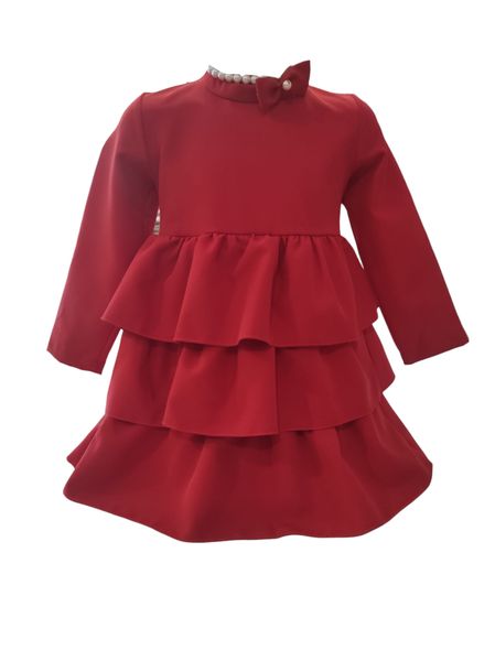 Φόρεμα με βολάνακια και κολιέ με πέρλες