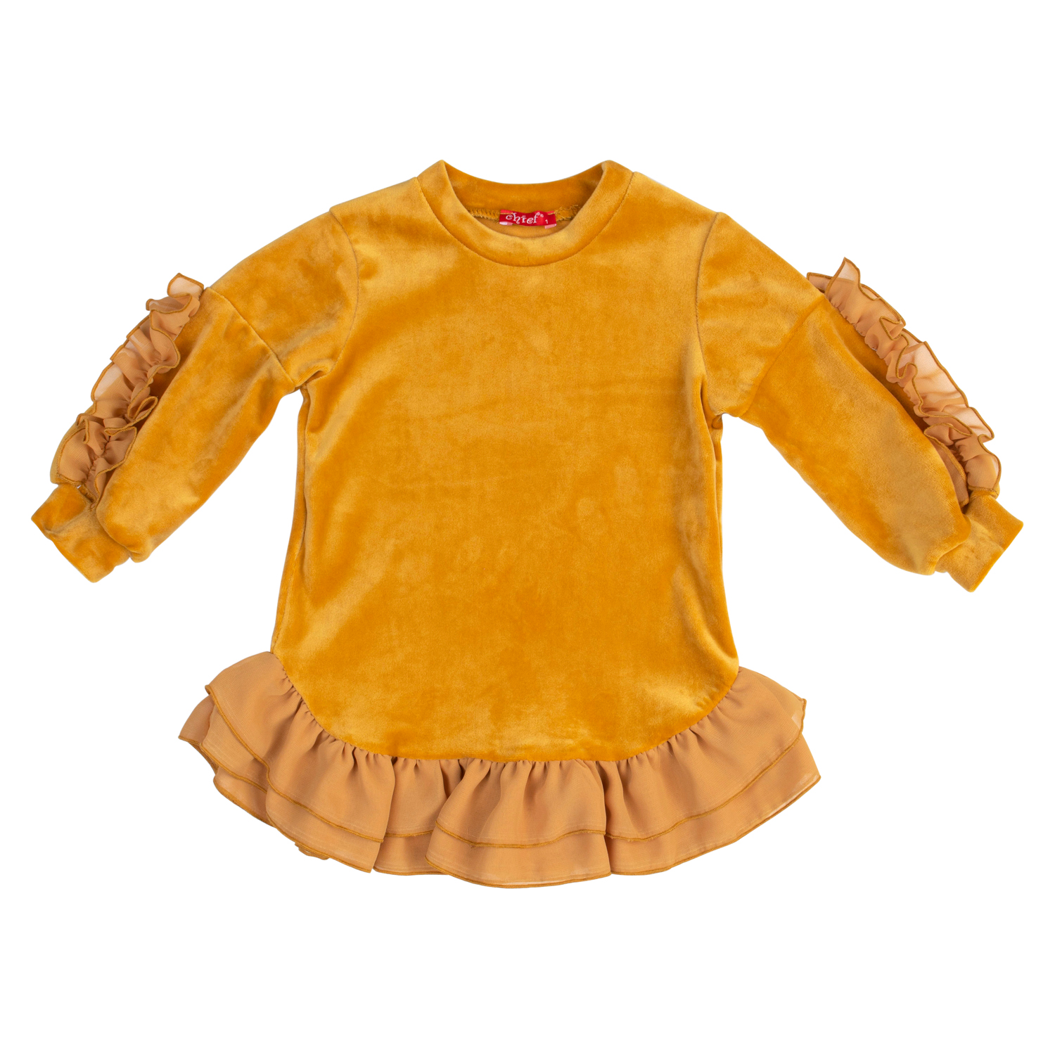 Μπεμπέ βελουτέ χειμερινό φόρεμα για κορίτσι σε ώχρα