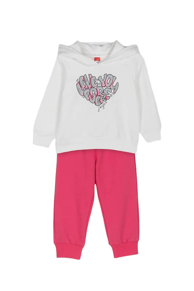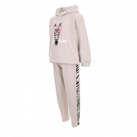 Φόρμα φούτερ με κουκούλα 2461105 εκρού-ροζ χρώμα