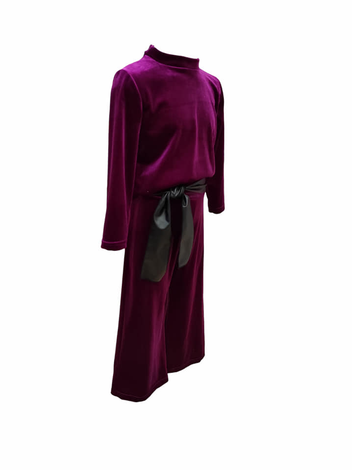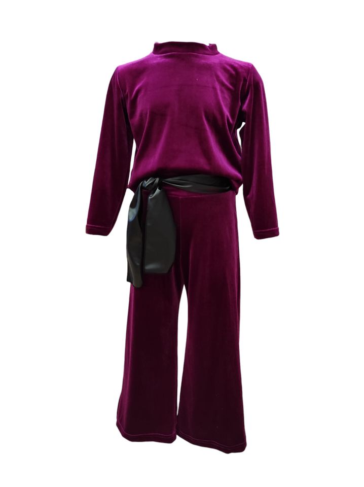 Σετ βελουτέ με παντελόνι καμπάνα με ζώνη και μπλούζα (ματζεντα)