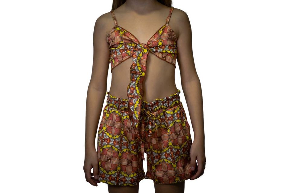 Σετ top με σορτς all-over κίτρινο retro
