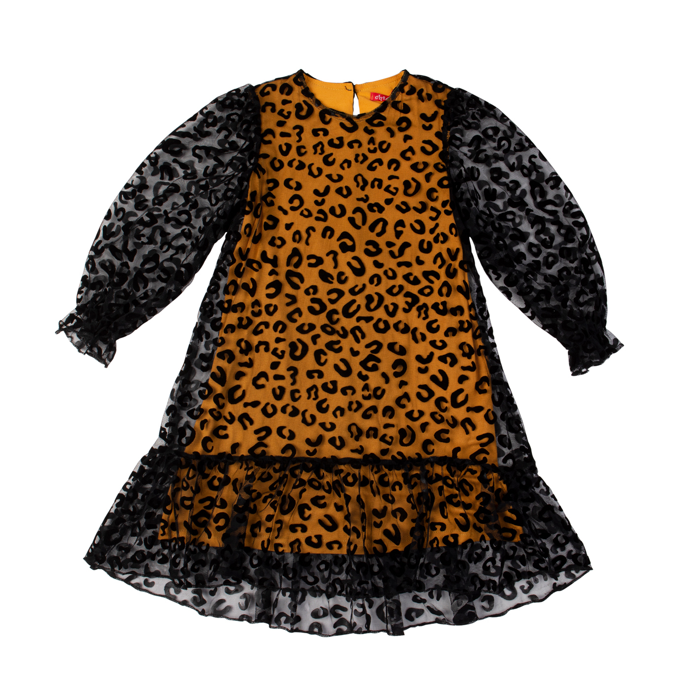 Φόρεμα μακρυμάνικο από μαύρο τούλι λεοπάρ