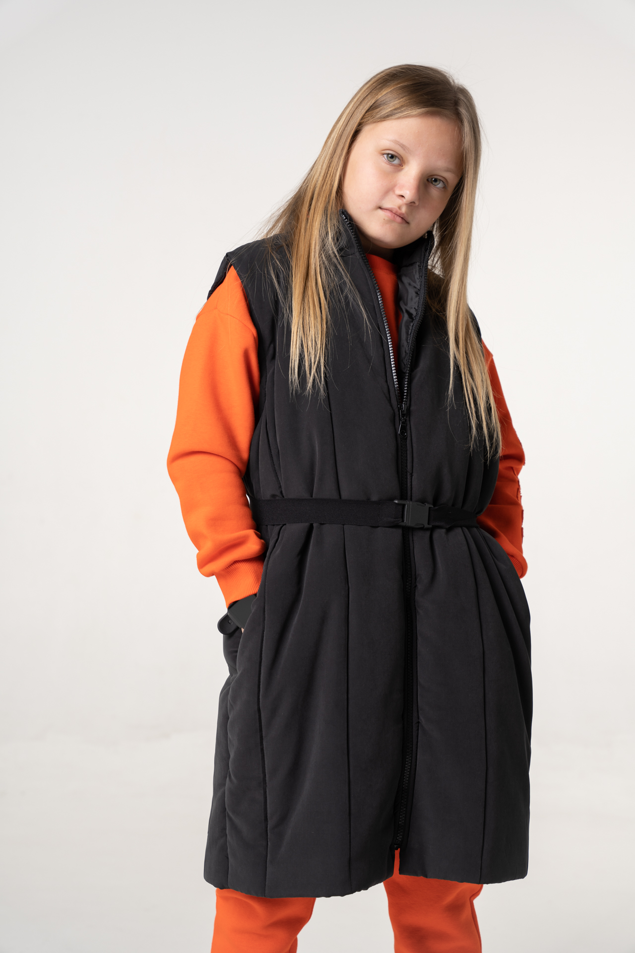 Αμάνικο μπουφάν με ζώνη και επενδύσει μαύρο