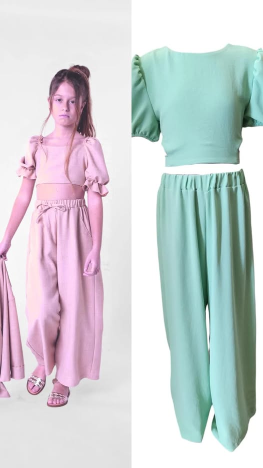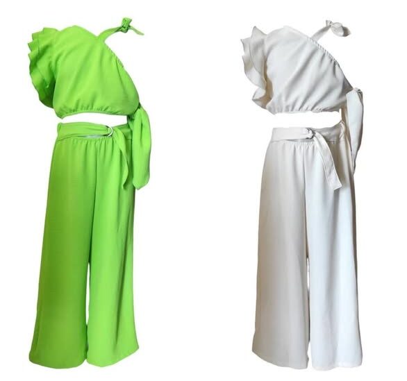 Σετ σε 3 χρεώματα κροπ-πουκάμισο με παντελόνι