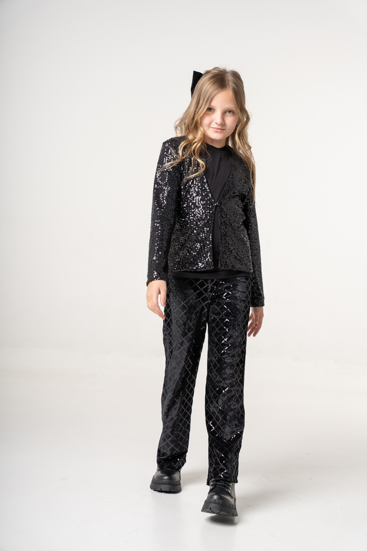 Παντελόνι βελουτέ με παγιέτα σε μαύρο χρώμα