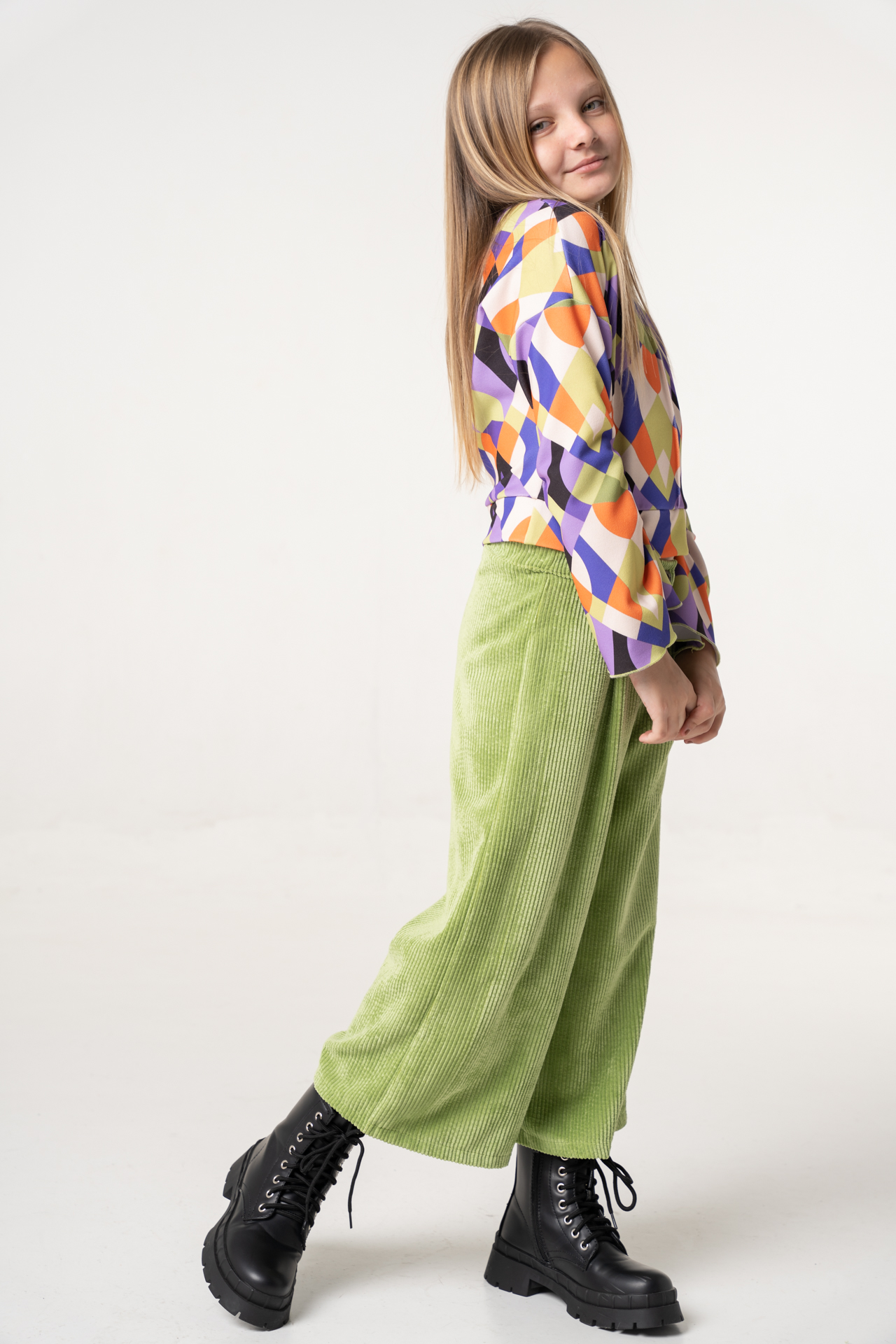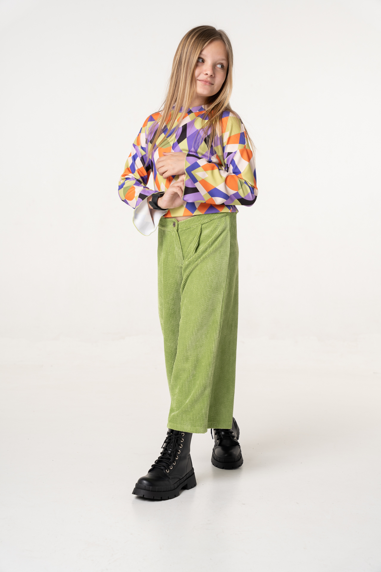 Παντελόνι κοτλέ με λάστιχο στο πίσω μέρος πράσινο χρώμα