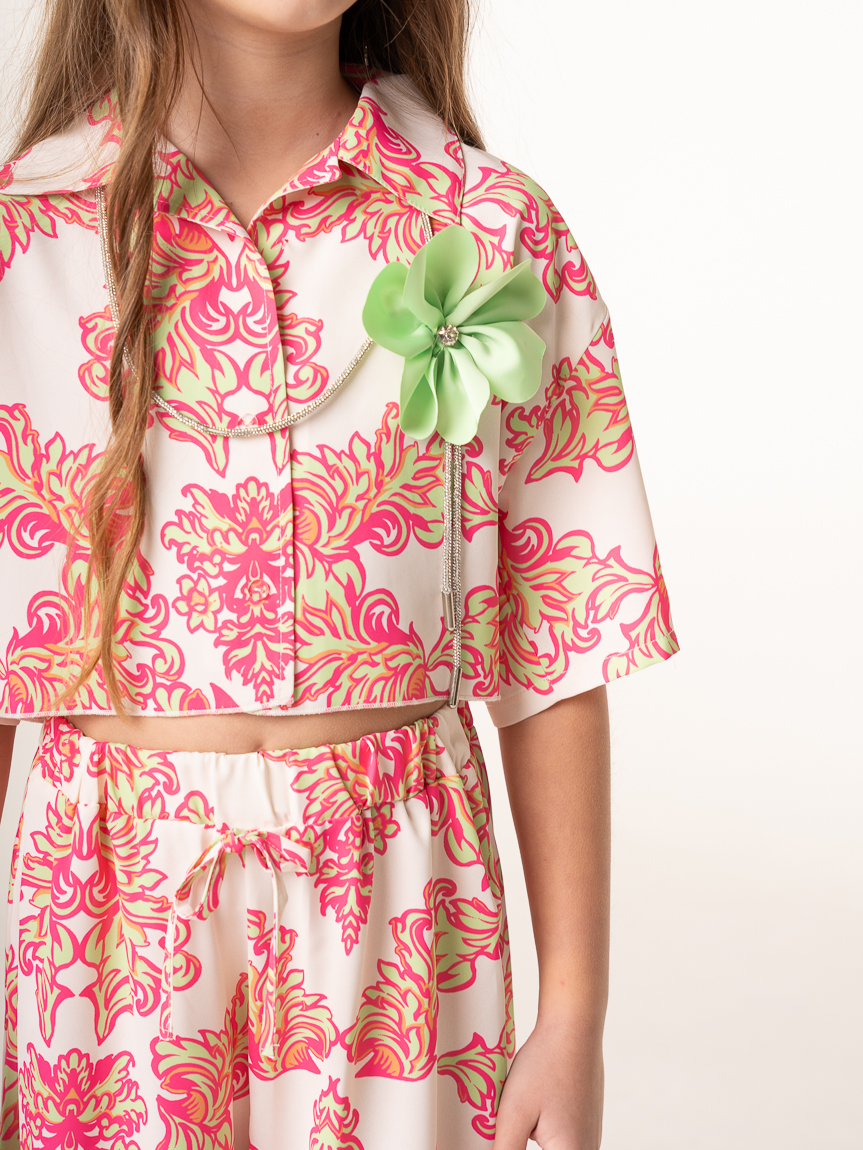 Σετ σε 3 χρεώματα κροπ-πουκάμισο με παντελόνι