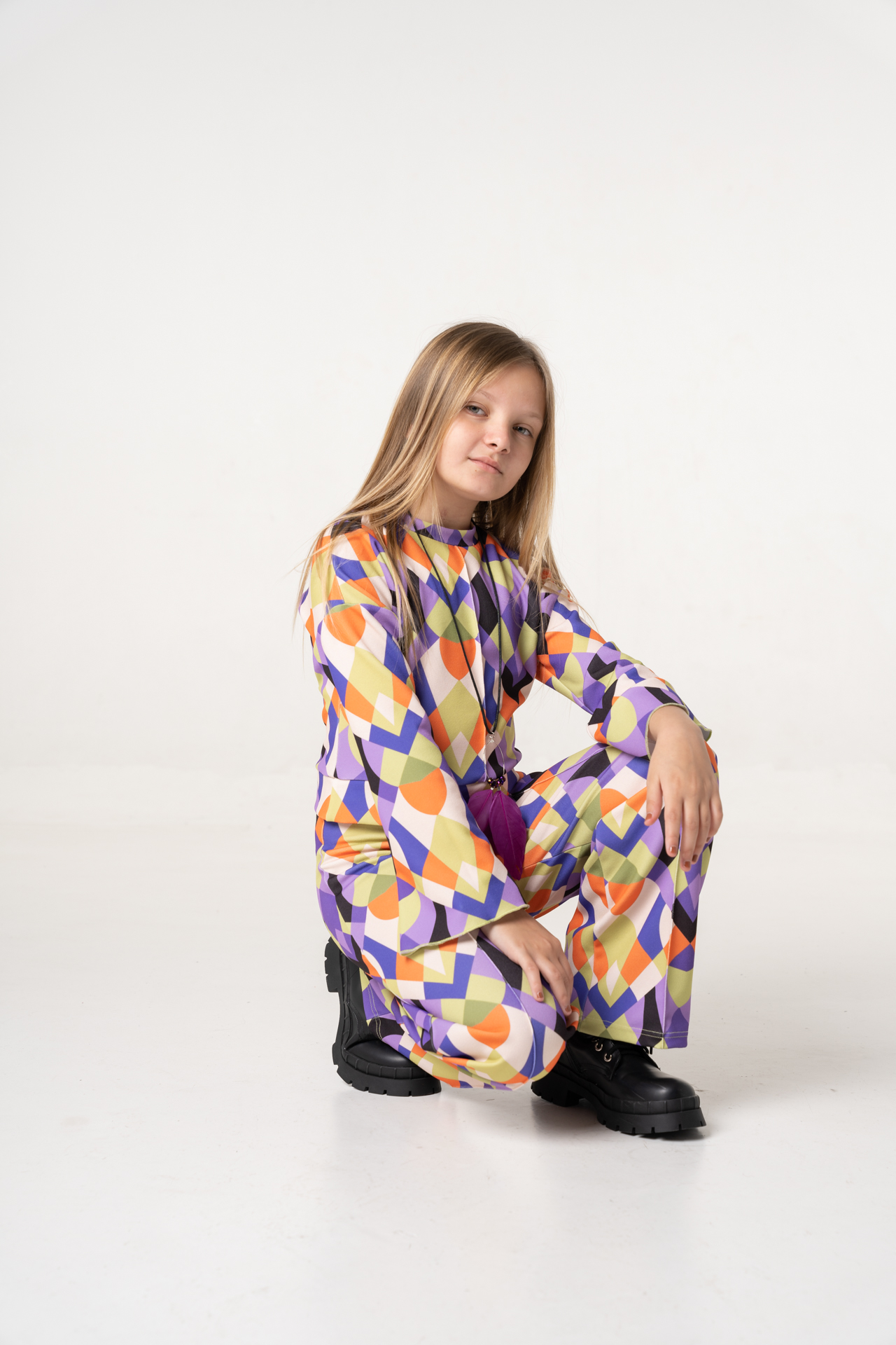 Σετ Παντελόνι εμπριμέ με πλεχτεί μπλούζα GNS410-400