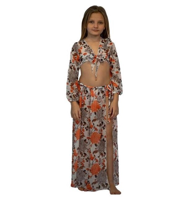 Σετ πουκαμίσα all-over floral με φούστα παρεό πορτοκαλί