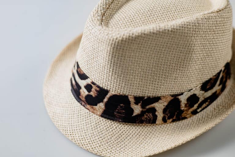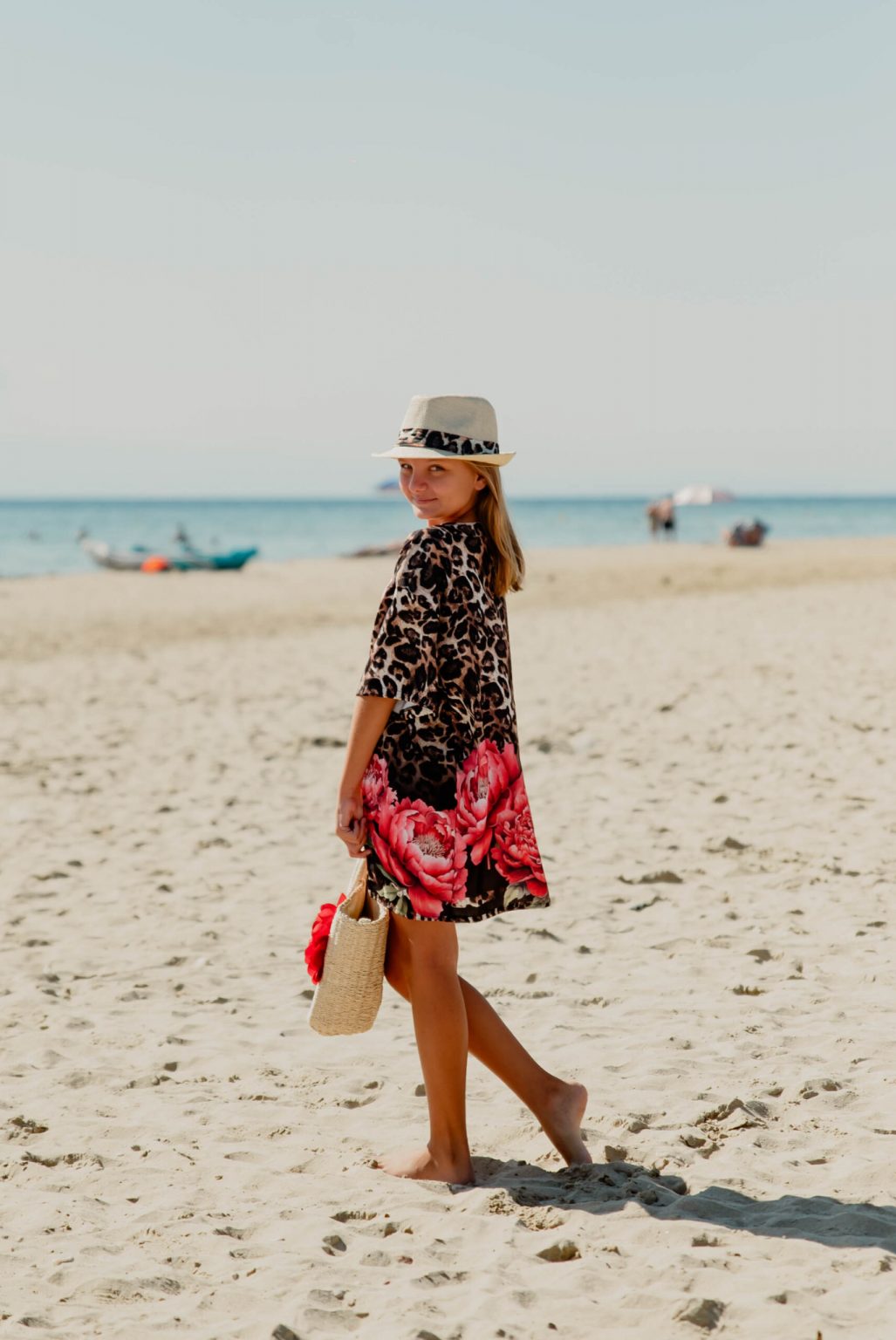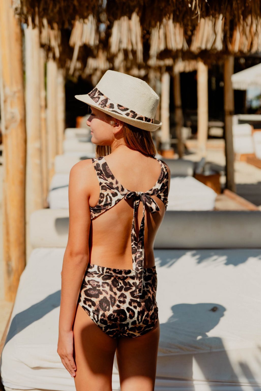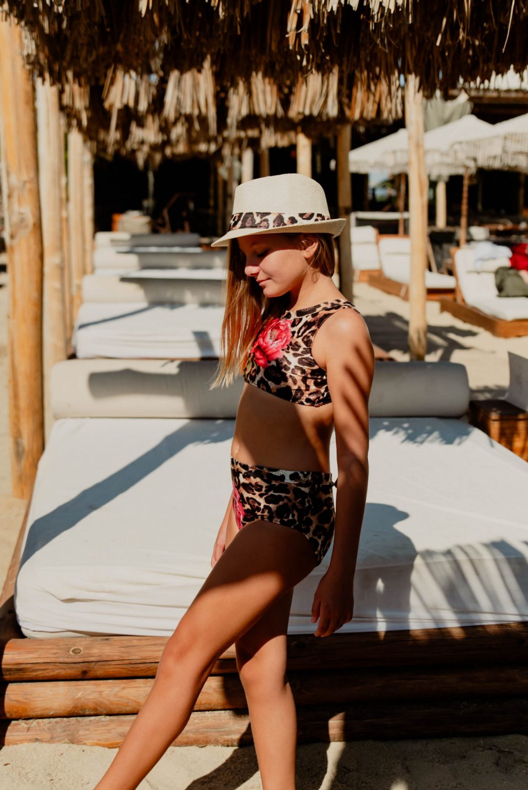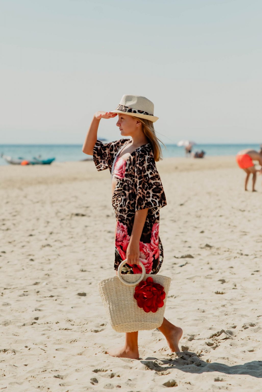 Καπέλο εκρού καβουράκι με κορδέλα all-over animal rose. Το ύφασμα είναι ελαστικό ίδιο με το μαγιό.