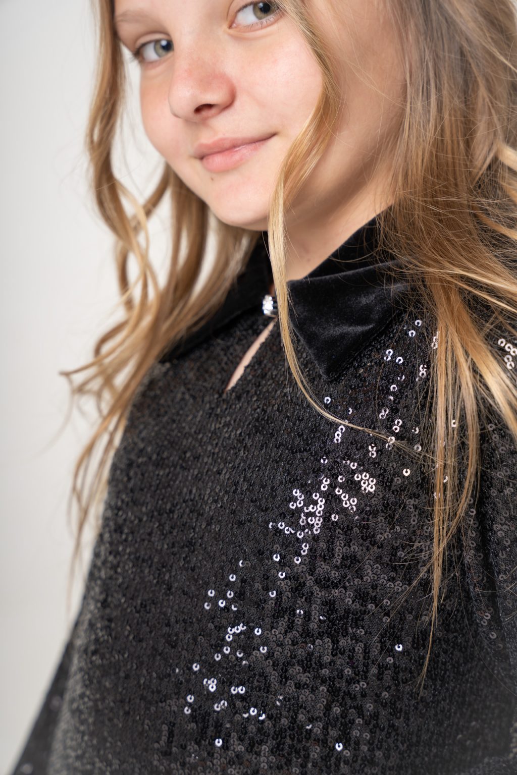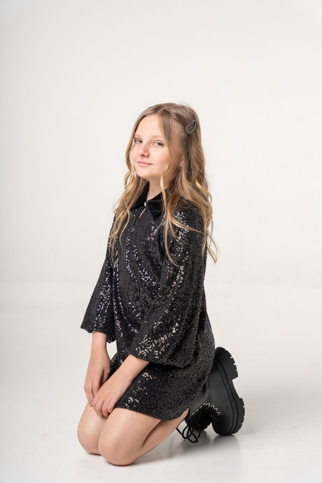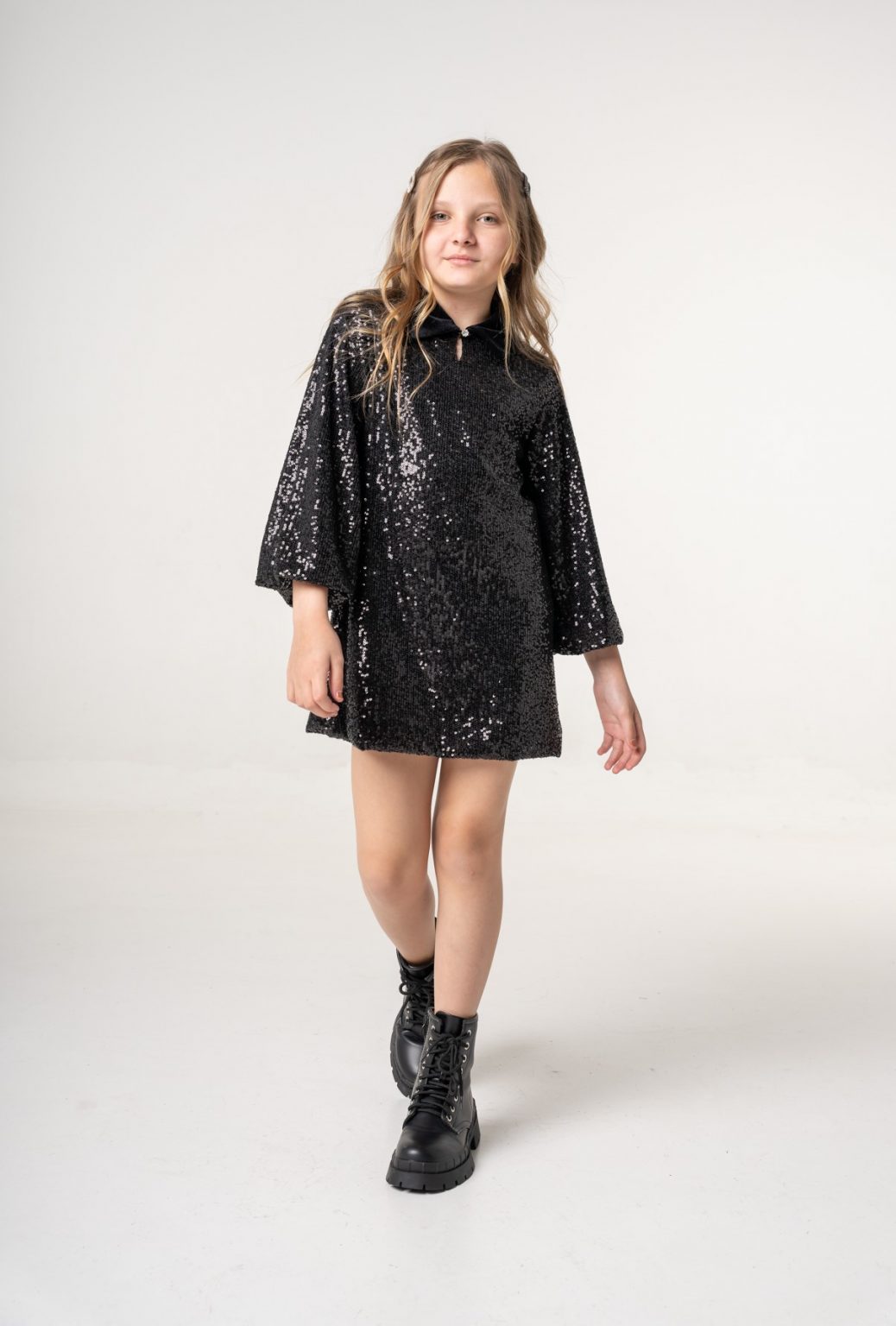 Παιδικό φόρεμα Ge.ni.us . Μοντέρνο Παιδικό φόρεμα με παγέτα και βελούδινο γιακά . Εσωτερική επένδυση με μαλακή φόδρα και διακοσμητικό κουμπάκι στον λαιμό . Άνετη γραμμή , ιδανικό για γιορτινές εμφανίσεις .