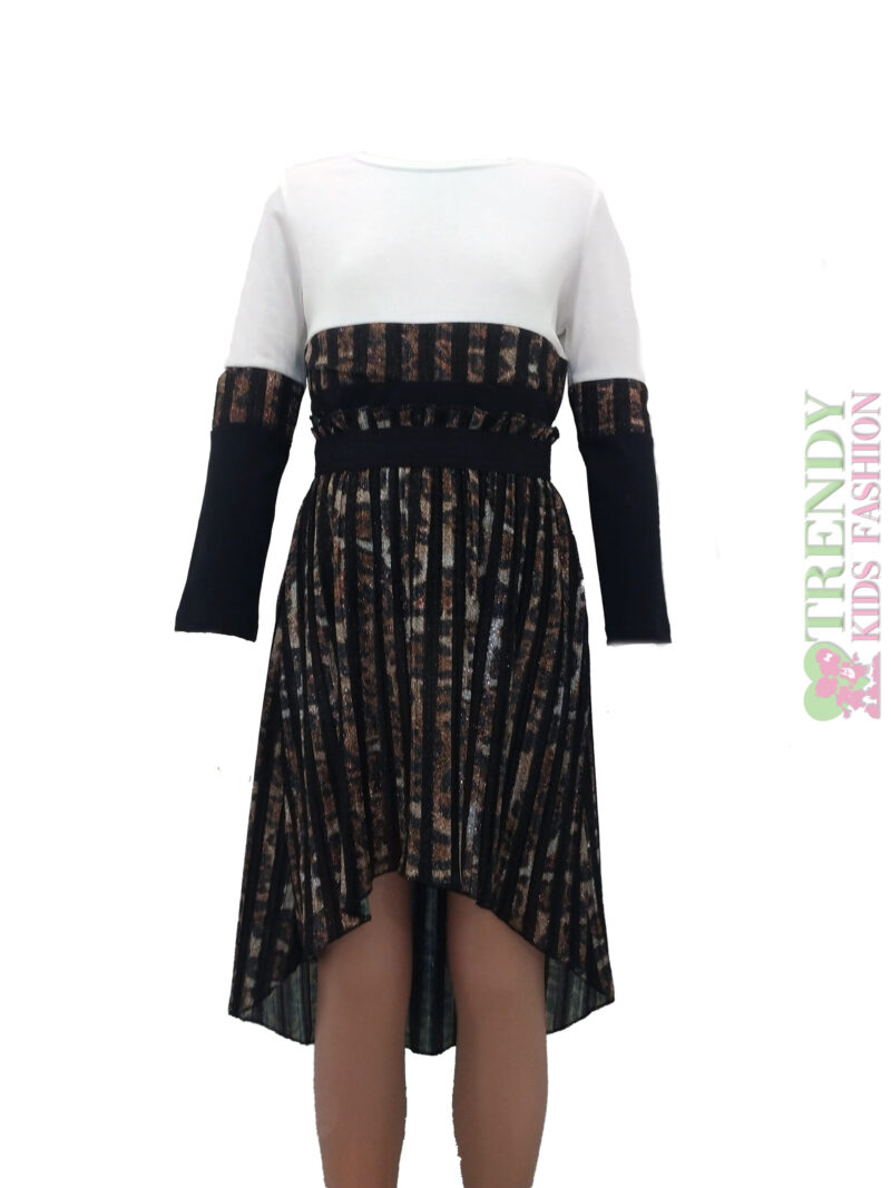 Μπλούζα μακρυμάνικη δίχρωμη εκρού και μαύρο με λωρίδα από ύφασμα λεοπάρ στη μέση της μπλούζας.