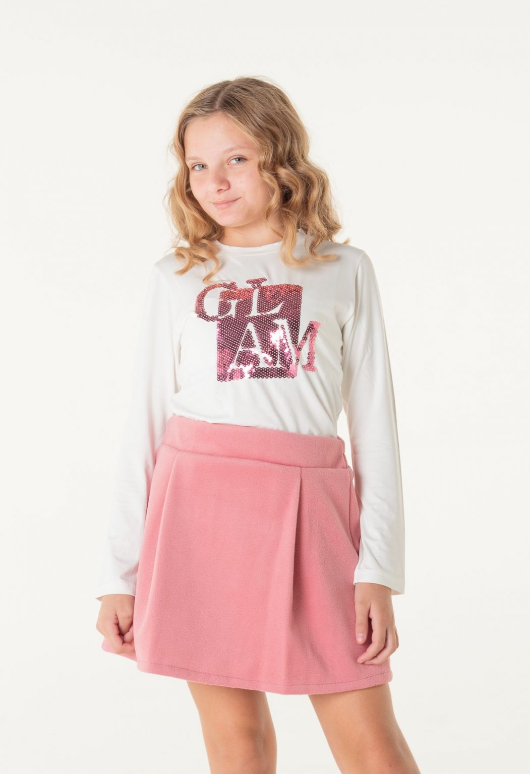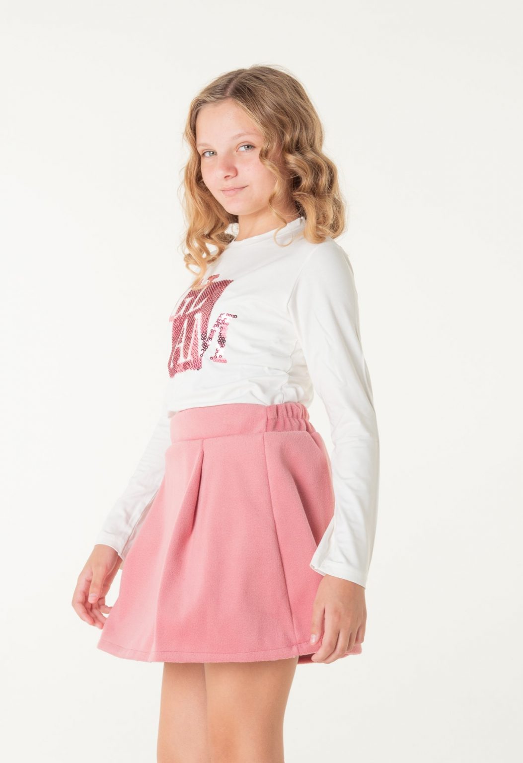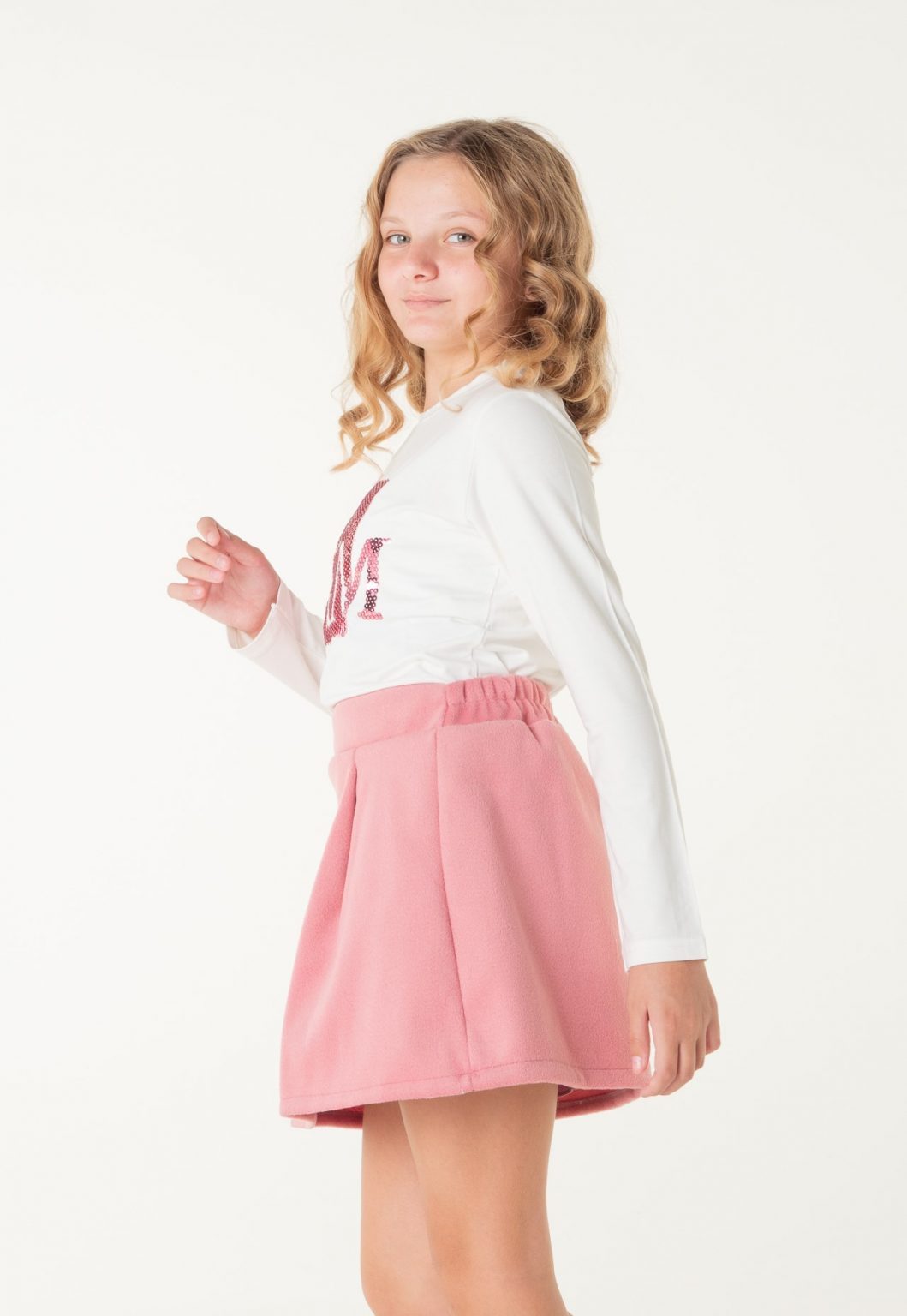 Φούστα με πιέτες φερμουάρ πίσω και λάστιχο 3 cm στην μέση ροζ χρώμα