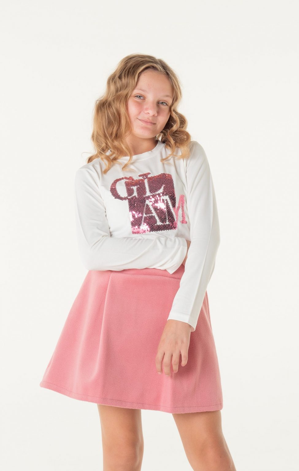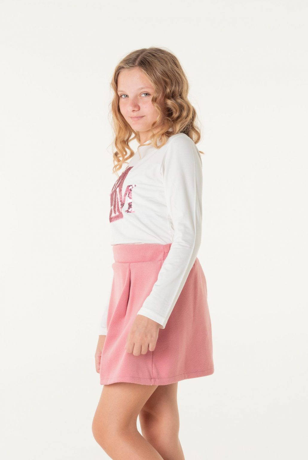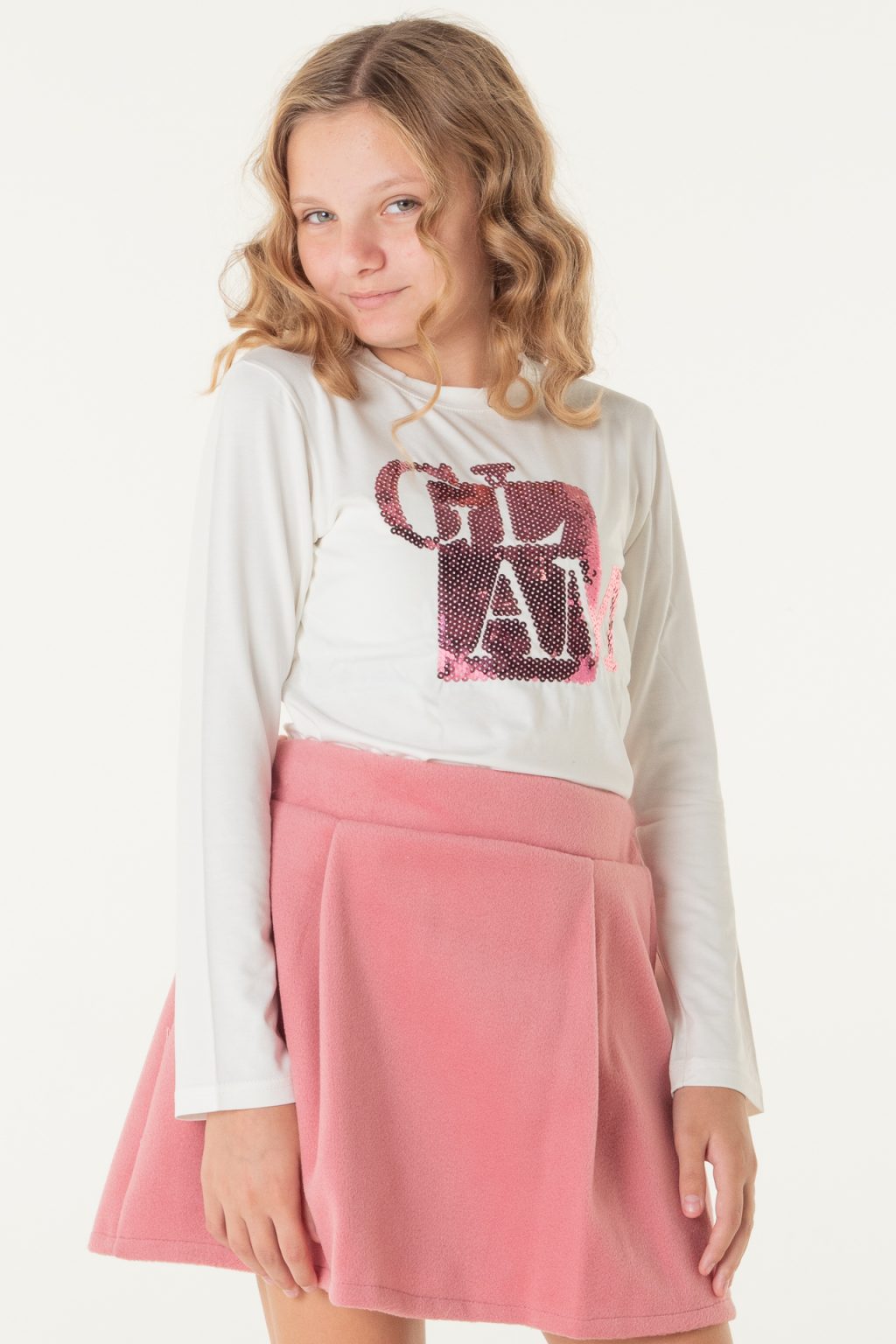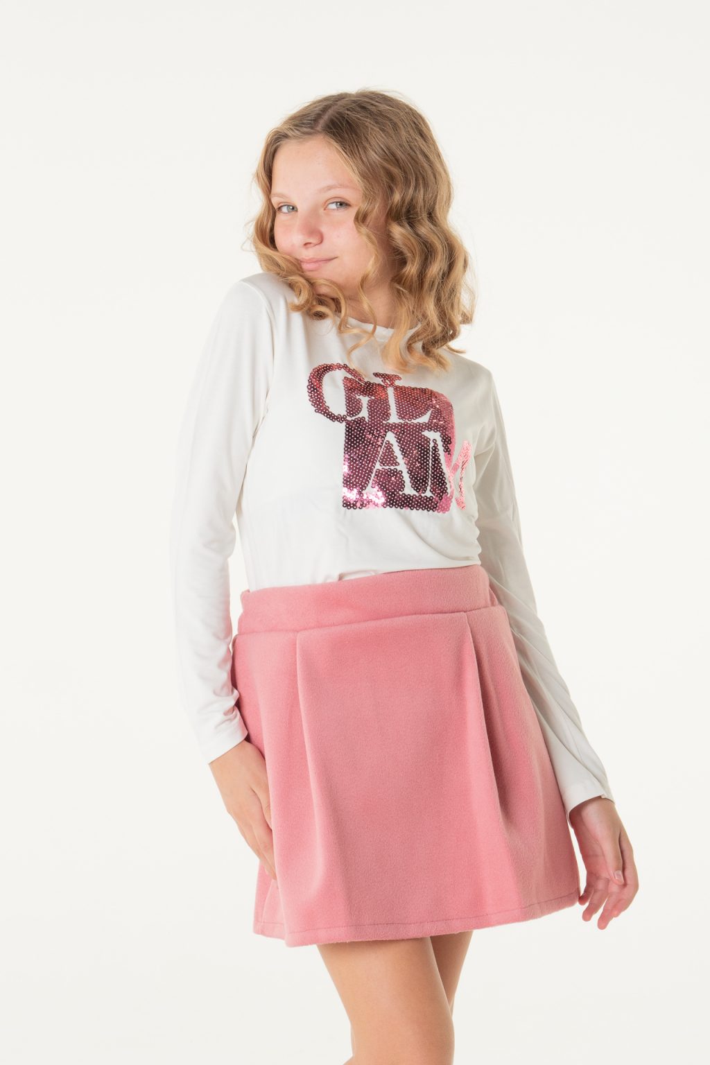 Φούστα με πιέτες φερμουάρ πίσω και λάστιχο 3 cm στην μέση ροζ χρώμα