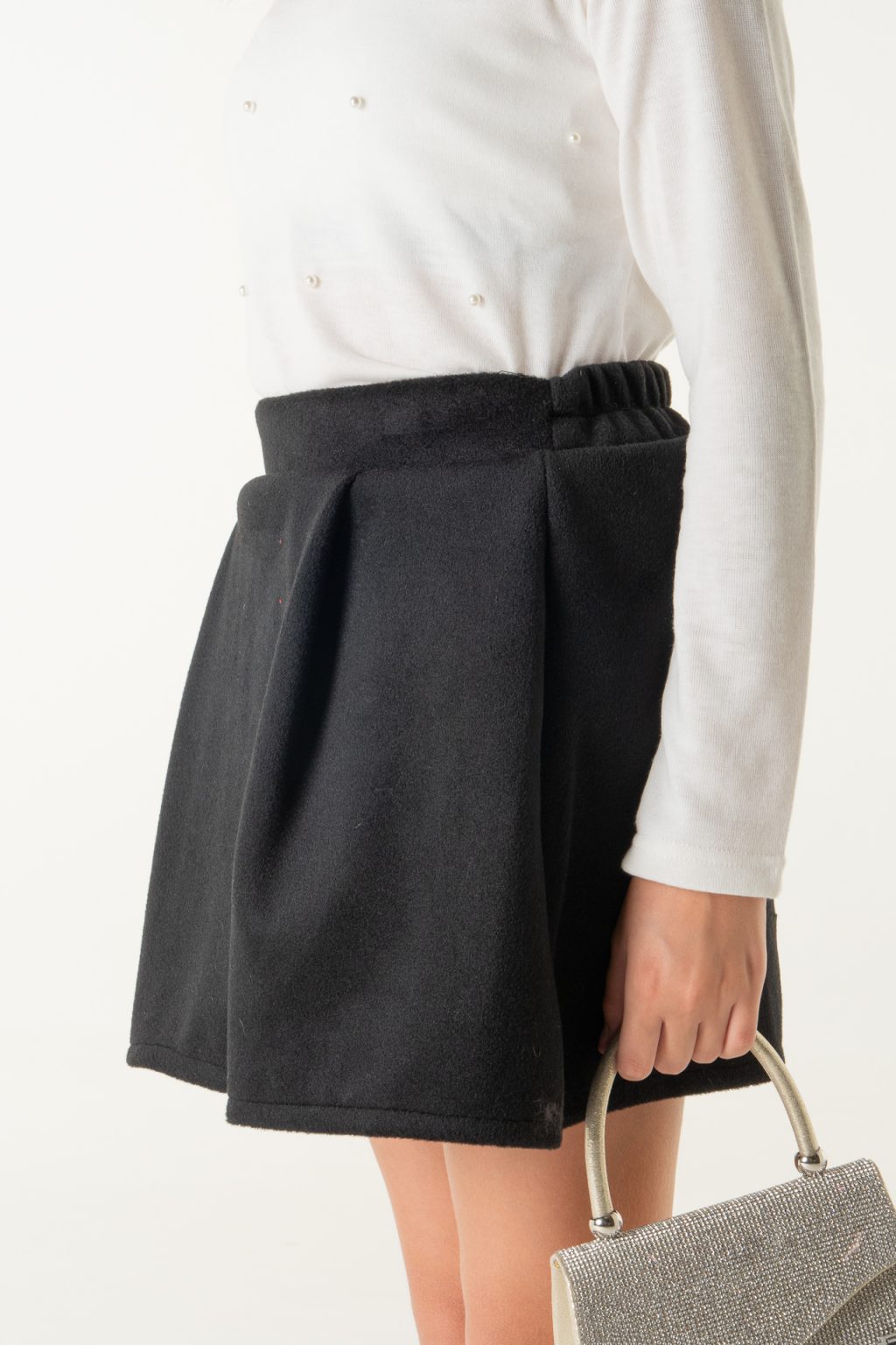 Φούστα με πιέτες φερμουάρ πίσω και λάστιχο 3 cm στην μέση μαύρο χρώμα