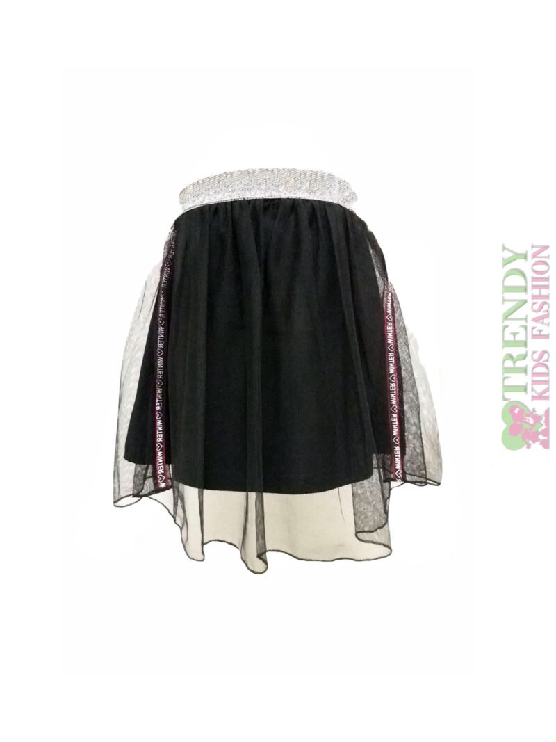 Φούστα με τούλι και διακοσμητικές τρέσσες στην πλαινή ραφή και κάλτσα βαμβακερή εσωτερικά.