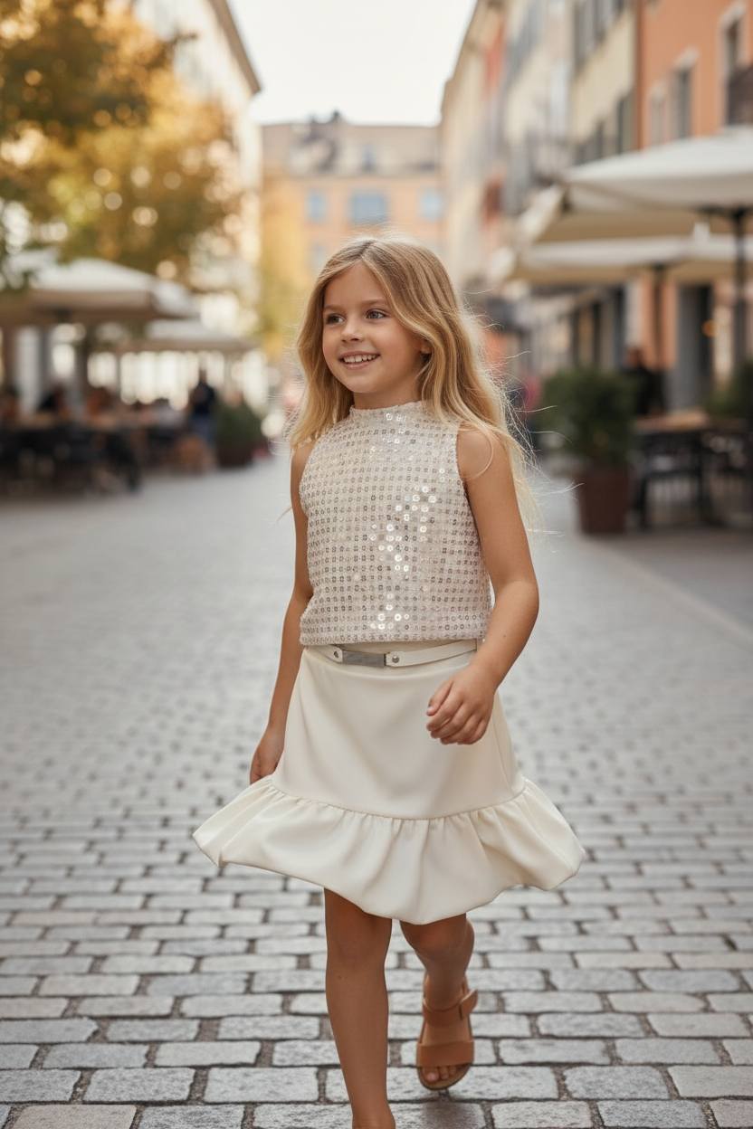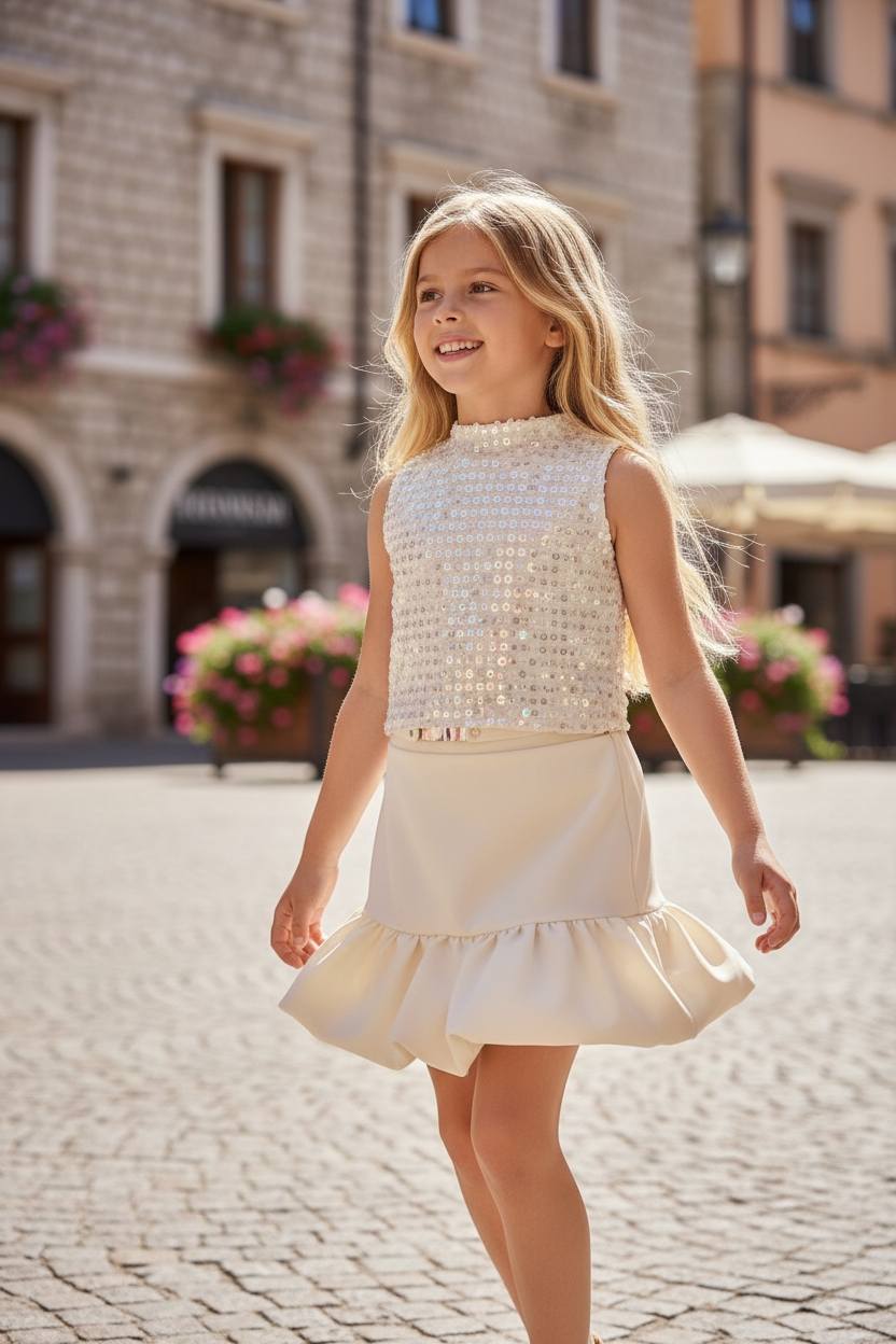 Φουστα με βολάν μπάλου και ζώνη. Συνδυάζετε με το σακάκι με κοδ. GNS805 οποίο είναι το ίδιο ύφασμα και χρώμα