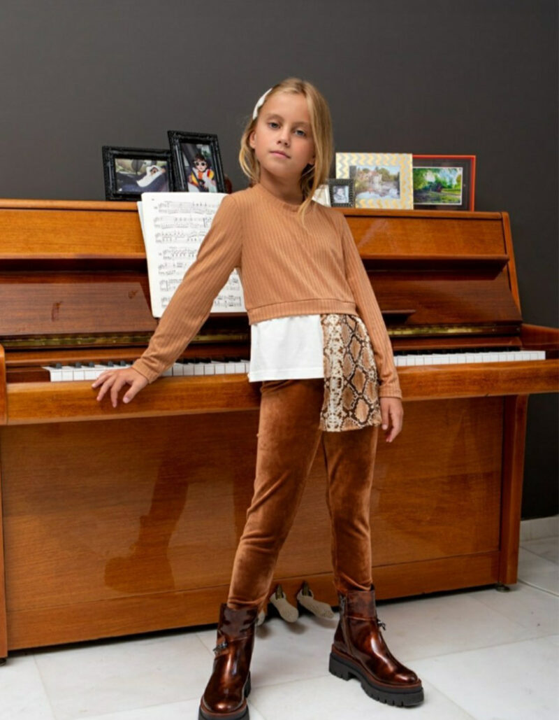 Κολάν βελουτέ σε σοκολά χρώμα με λάστιχο στην μέση.