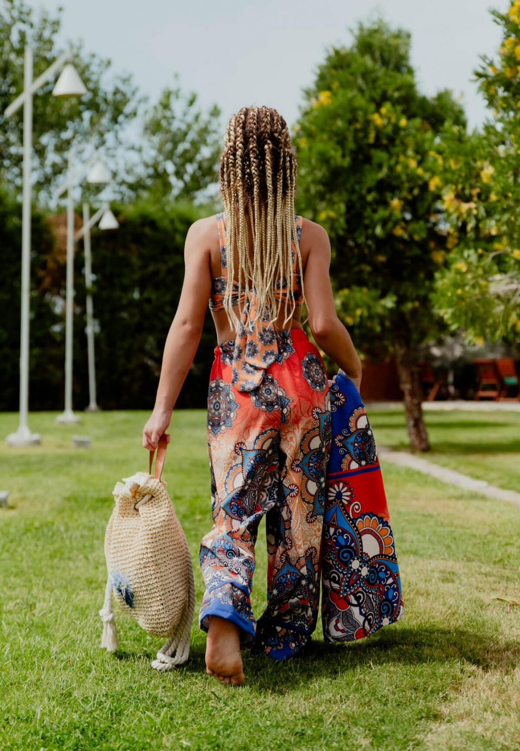 Παντελόνα με αποκλειστικό all-over τύπωμα και μπορντούρα CL. Προέλευση: MADE IN GREECE