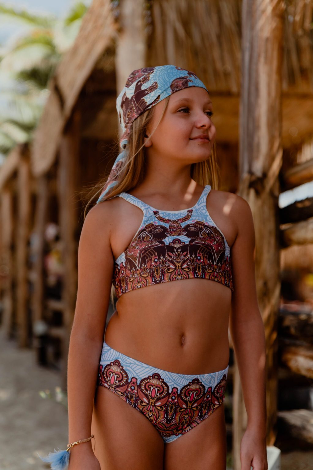 Μπικίνι μπούστο all-over print elephant με ξύλινες χάντρες