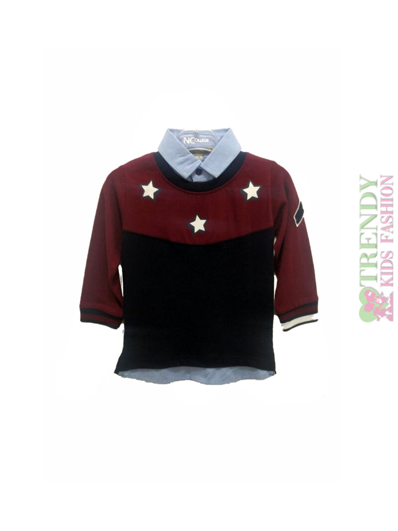 Μπλούζα με γιακά δίχρωμη, τύπωμα αστεράκια εμπρός