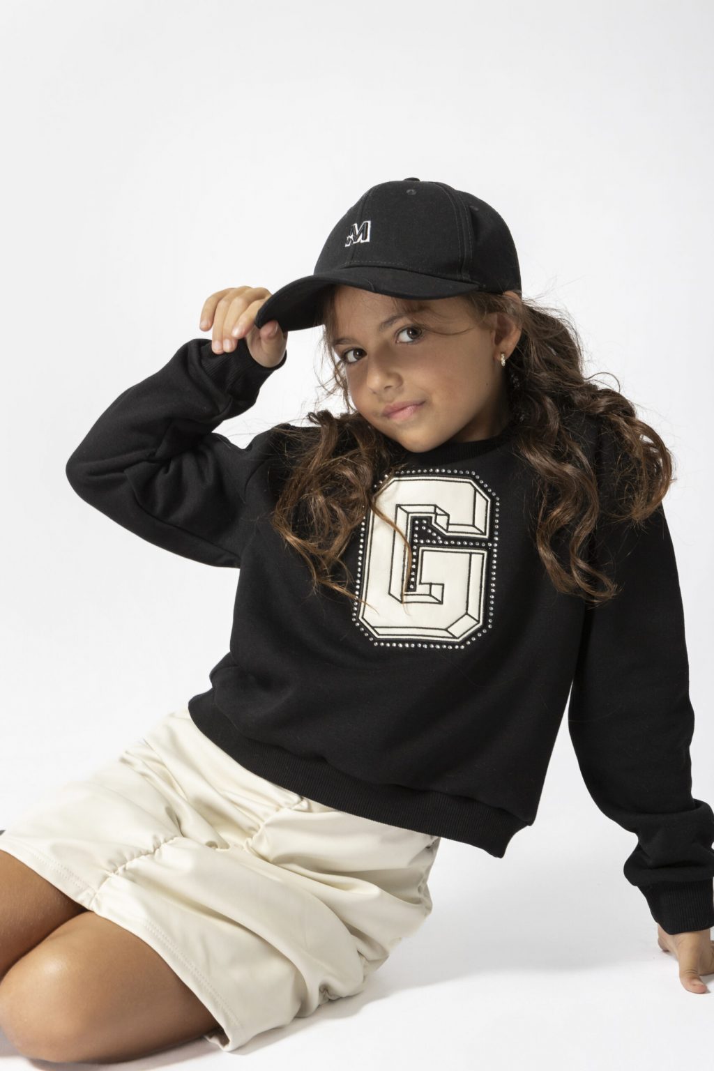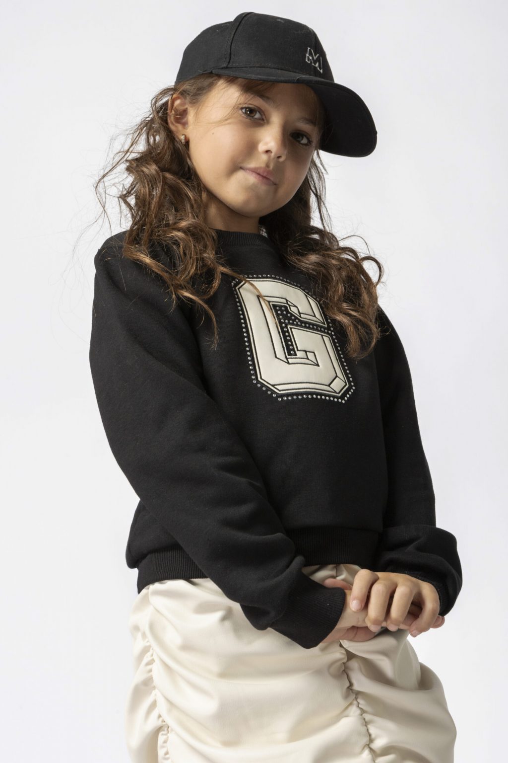 Μπλούζα φούτερ με κέντημα απλικέ και στρας. Συνδυάζετε τελεία με σατέν φούστα κωδ- GNS826