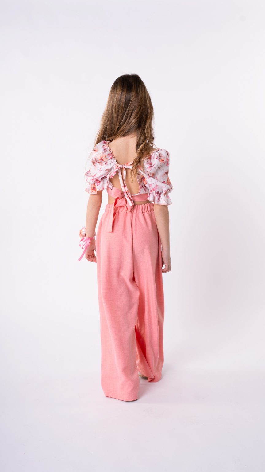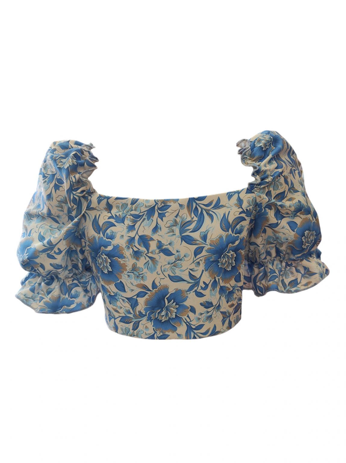 Μπλούζα-κροπ με άνοιγμα στην πλάτη . Μανίκια με λάστιχο στον ποδόγυρο.