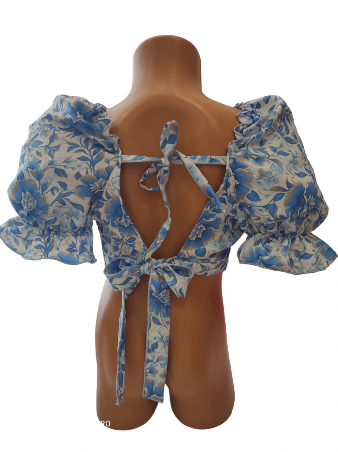 Μπλούζα-κροπ γαλάζιο χρώμα με άνοιγμα στην πλάτη