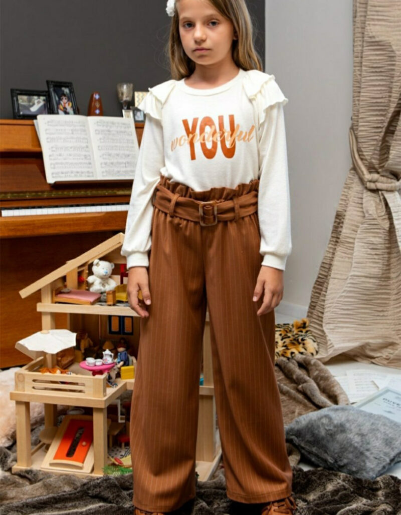 Σετ Μπλούζα πλεκτή με Παντελόνι σε σοκολάτα ριγέ ύφασμα