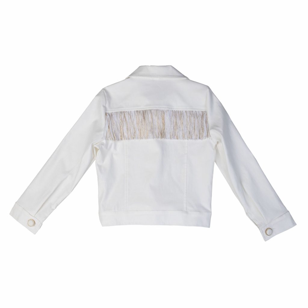 Μπουφάν εκρού με κρόσια πίσω στην πλάτη.