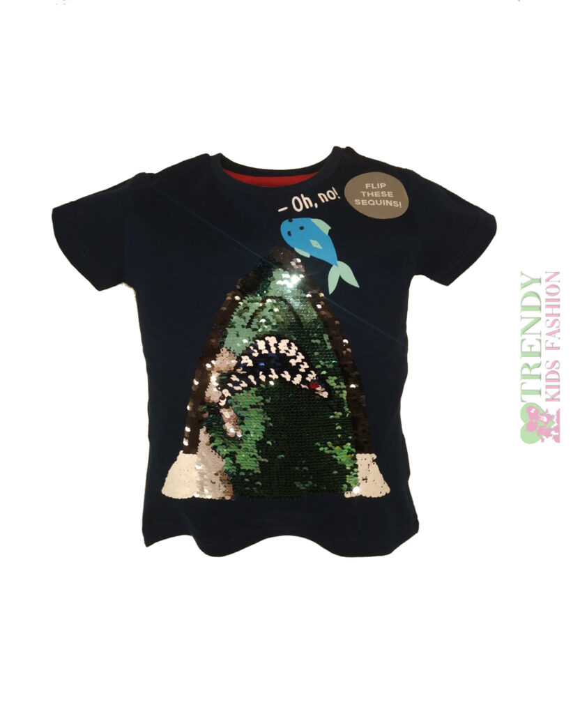 Παιδική μπλούζα κοντομάνικη για αγόρι από 1 έως 6 ετών, σε χρώματα navy μπλε με τύπωμα “SHARK”
