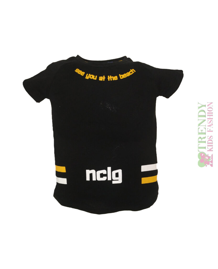 Παιδική μπλούζα κοντομάνικη με τύπωμα “nclg” και τύπωμα στο λαιμό “see you at the beach”