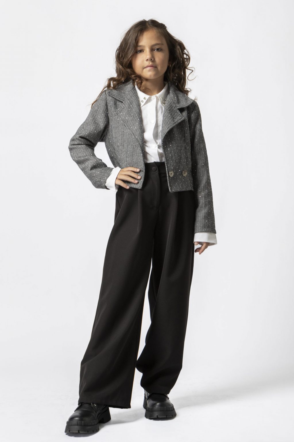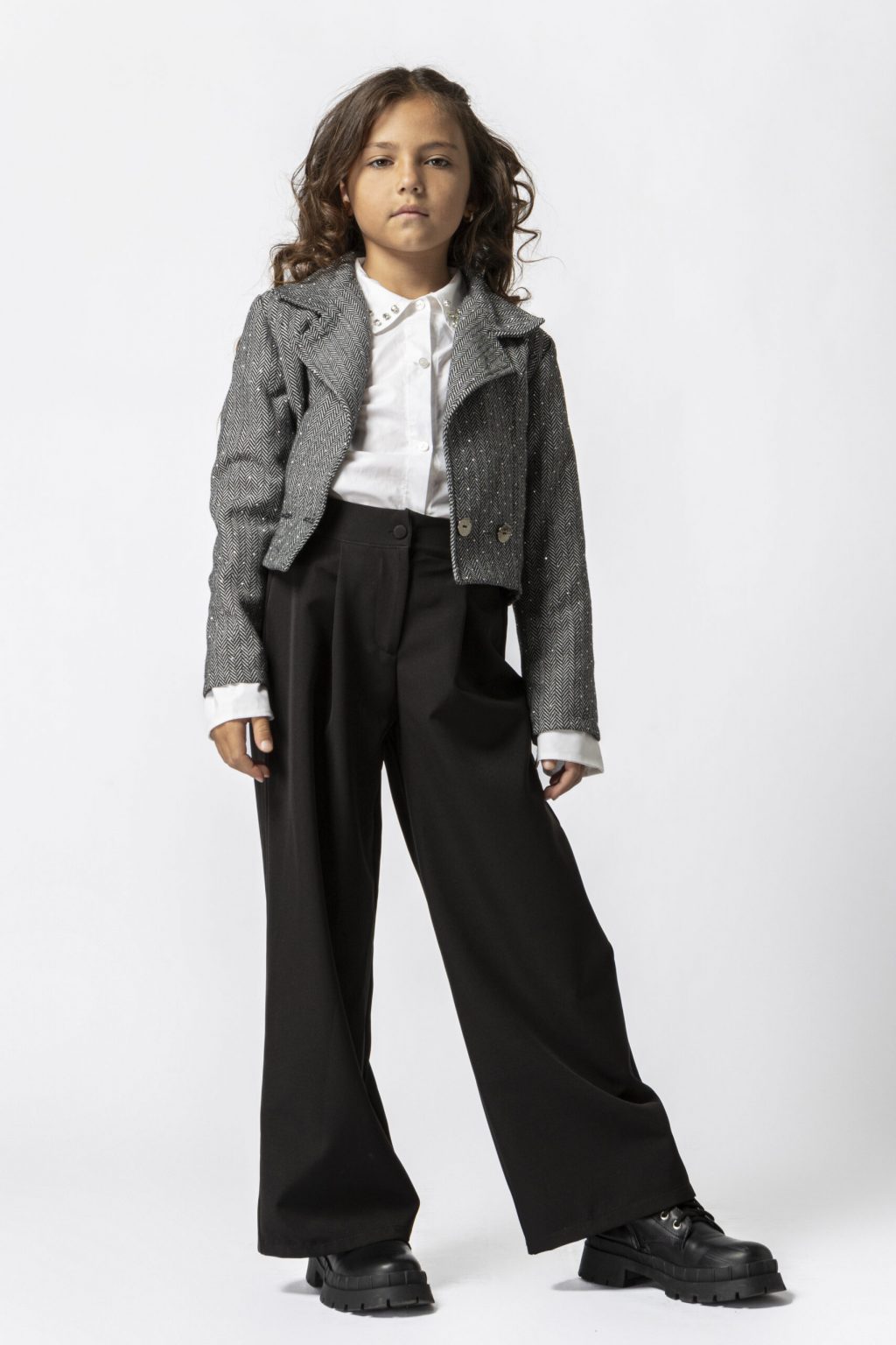 Παιδικό παντελόνι Ge.ni.us . Παντελόνι μαύρο με πιέτες εμπρός και φερμουάρ . Συνδυάζετε τελεία με με τουνικ κωδ- GNS850 και Σακάκι κωδ- GNS360