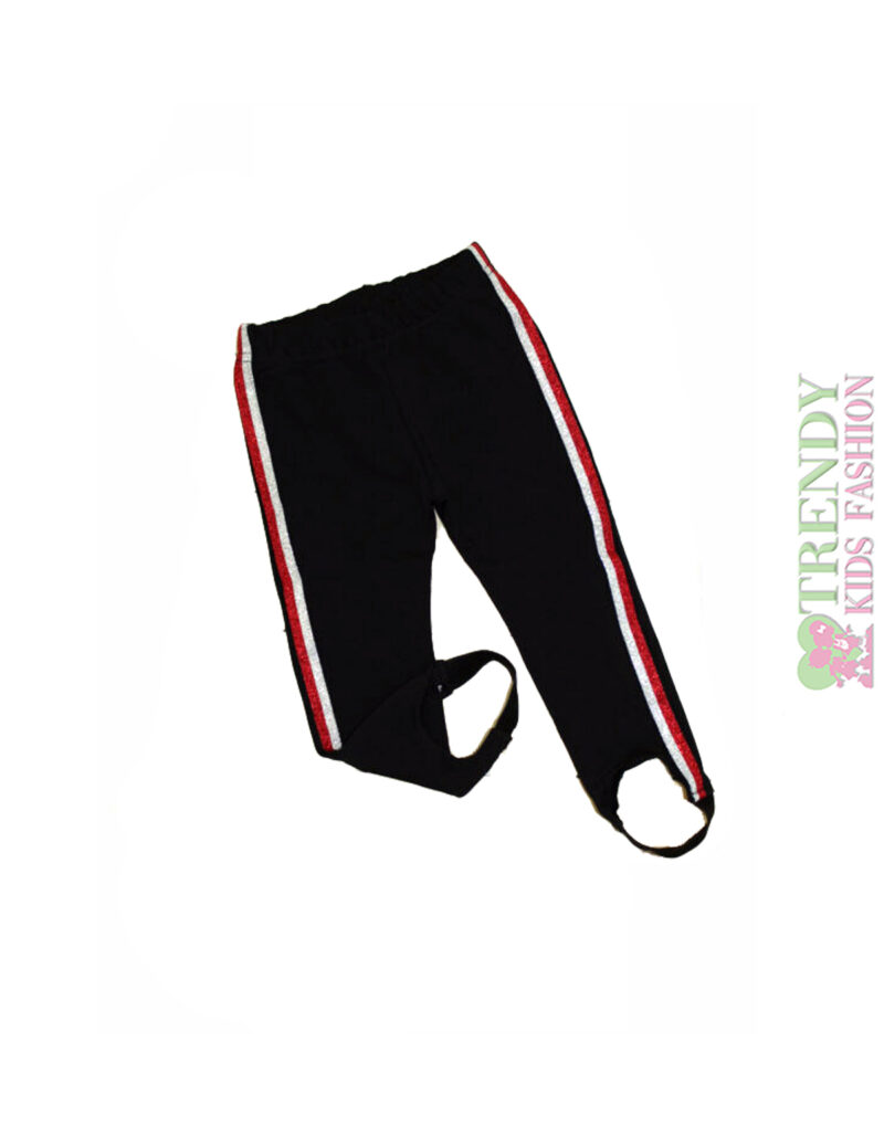 Μαύρο παντελόνι φούτερ, λύκρα αχνούδιαστο με κόκκινη και λευκή ρίγα στο πλάι
