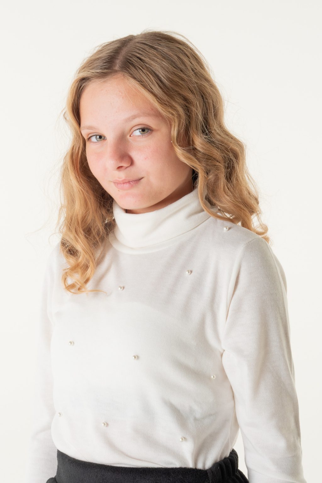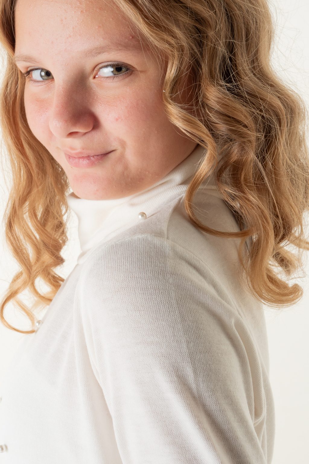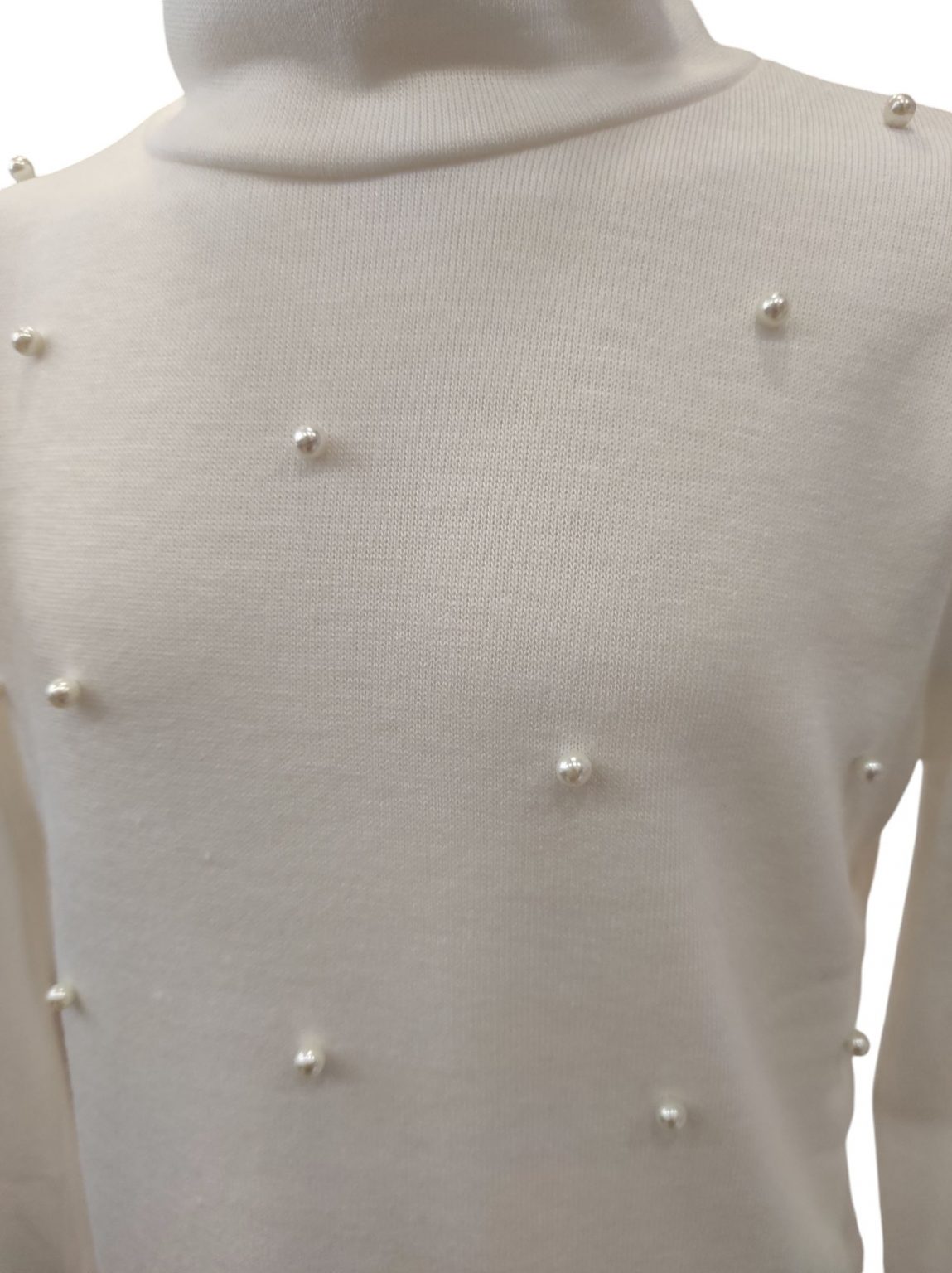 Πλεκτο μπλουζάκι ζιβάγκο με πέρλες εκρού χρώμα