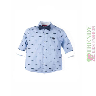 Πουκάμισο για αγόρι 100% cotton σιέλ με παπιγιόν
