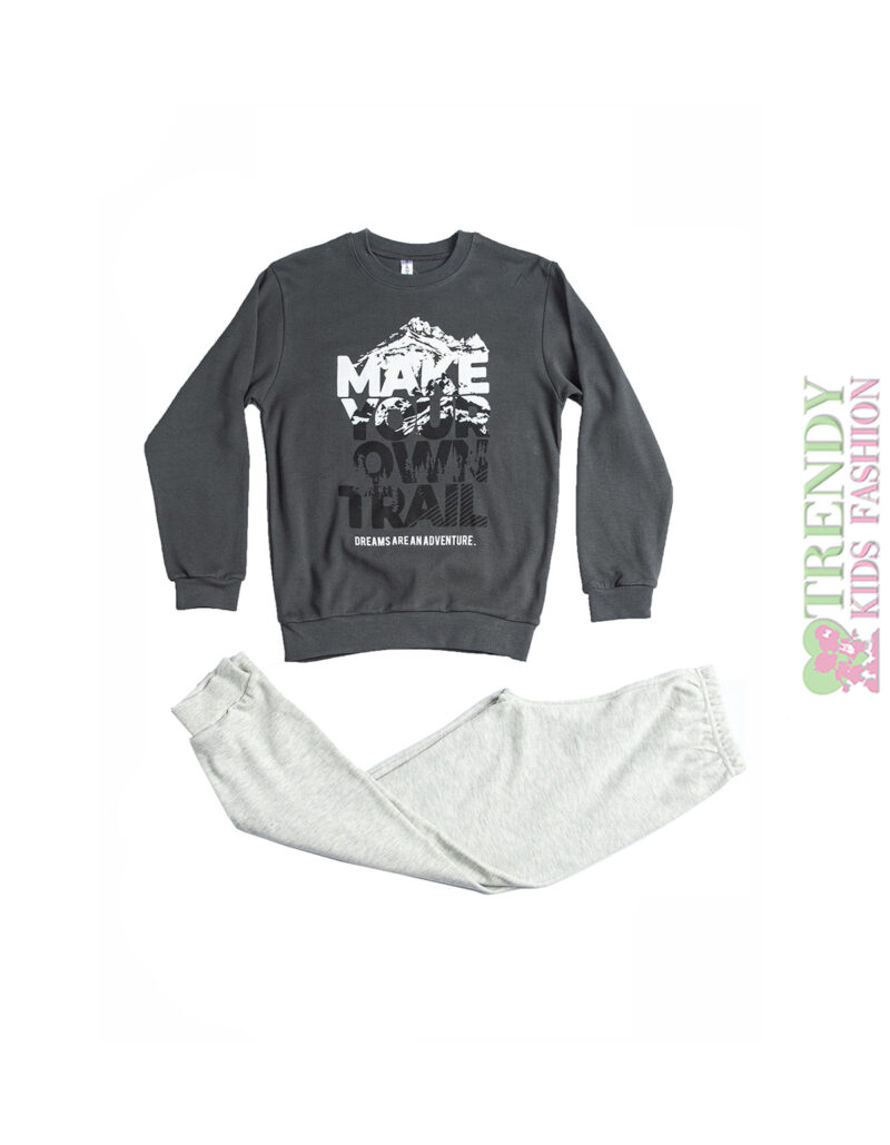 Σετ μπλούζα μακρυμάνικη με τύπωμα μπροστά σε συνδυασμό με μακρύ παντελόνι .