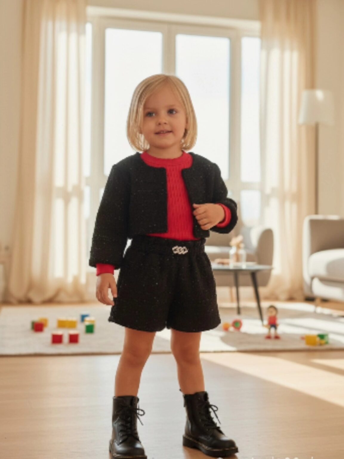 Σετ 3 τεμ. τύπου CHANEL σακάκι σορτς και πλεκτο μπλουζάκι.ΠΛΕΚΤΟ ΚΟΚΚΙΝΟ ΜΠΛΟΥΖΑΚΙ ΟΧΙ ΠΟΥ ΦΟΡΑΕΙ ΤΟ ΜΟΝΤΕΛΟ!