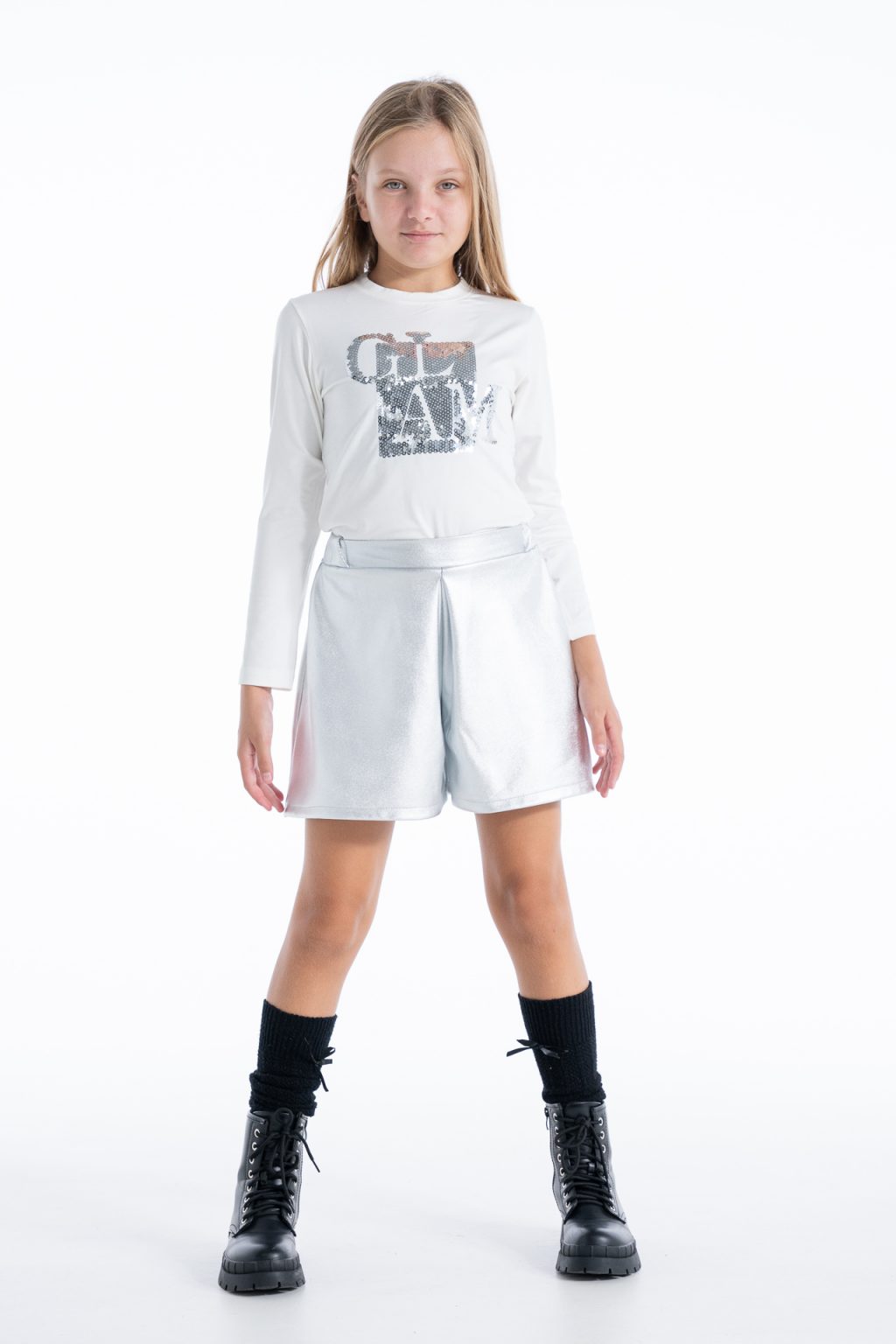 Δερμάτινο φούστα-σορτς ασήμι χρώμα
