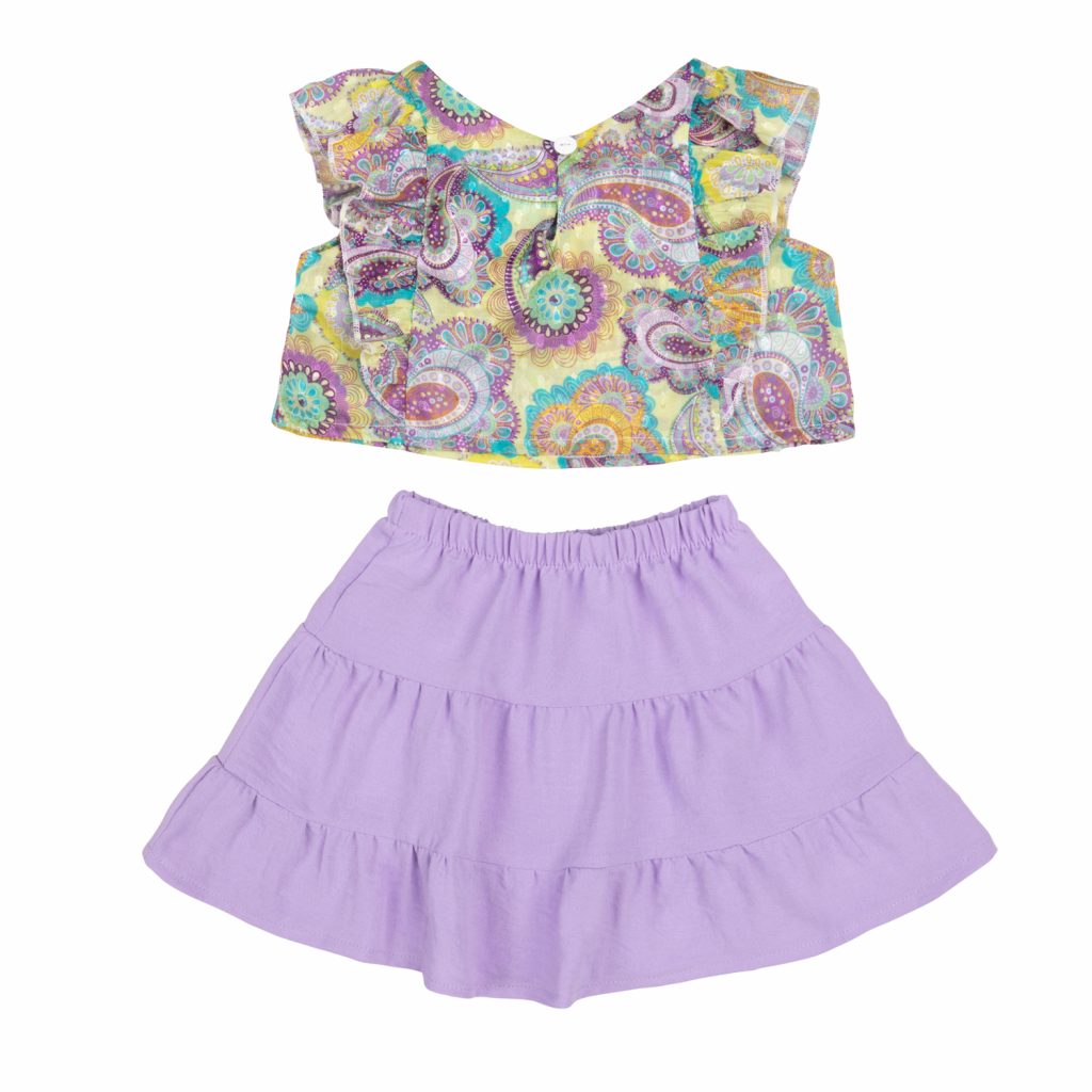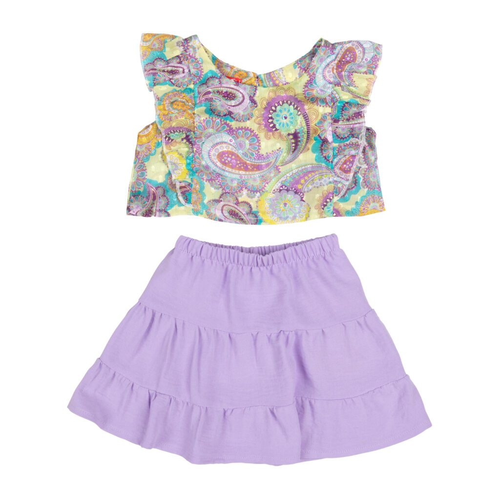 Σετ καλοκαιρινό top φούστα μπεμπέ σε μωβ και λάιμ χρώμα