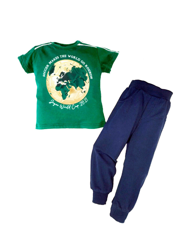 Σετ μπλούζα πράσινη με κοντό μανίκι & παντελόνι φόρμας “World”