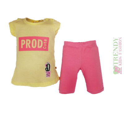 Σετ μπλουζάκι κίτρινο με κολάν ροζ