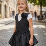Σετ πουκάμισο με στρας στο γιακά και φούστα πούπουλα με παγετα.