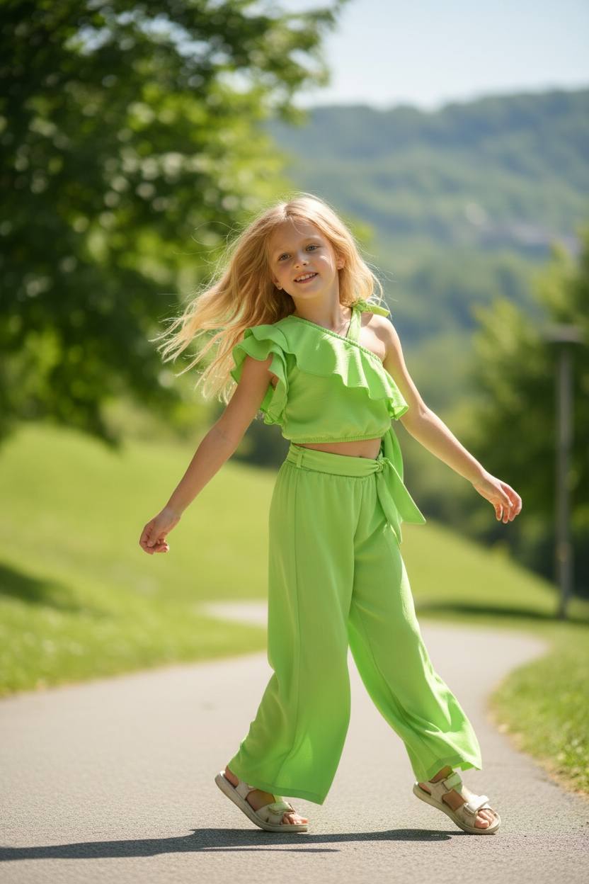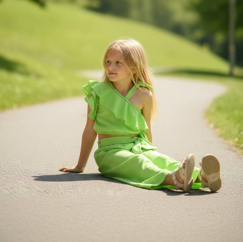 Σετ τοπάκι με βολάν στο μανίκι με δέσιμο και παντελόνι με άνοιγμα. Πωλούνται και ξεχώρισα! Παραγωγή / Κατασκευή Αποκλειστικά στην ΕΛΛΑΔΑ