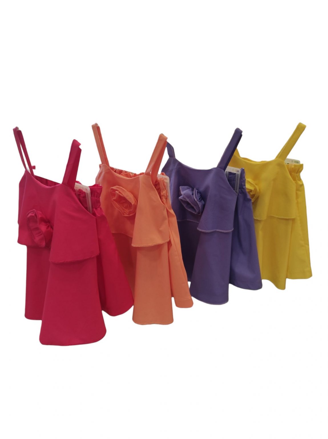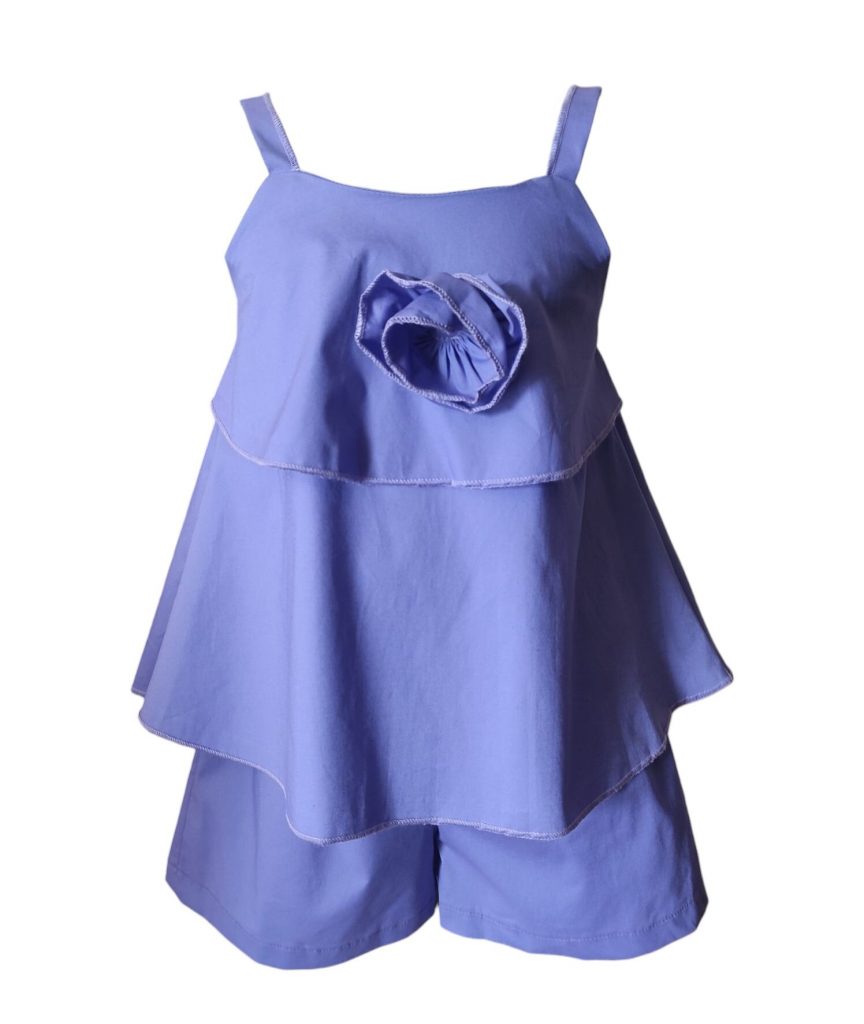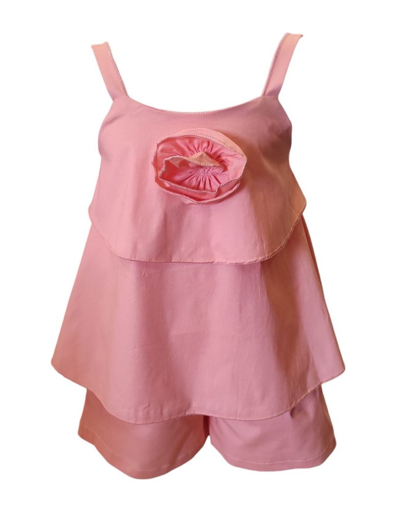 Σετ σε 4 χρώματα με αεράτο crop top με λουλούδι και σορτς. 100% βάμβακι.