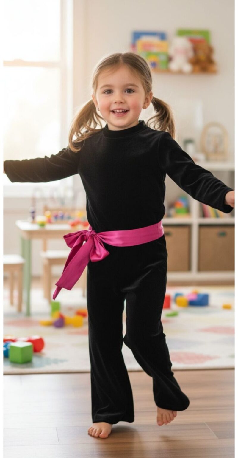 Σετ βελουτέ με παντελόνι καμπάνα με ζώνη και μπλούζα (μαύρο)