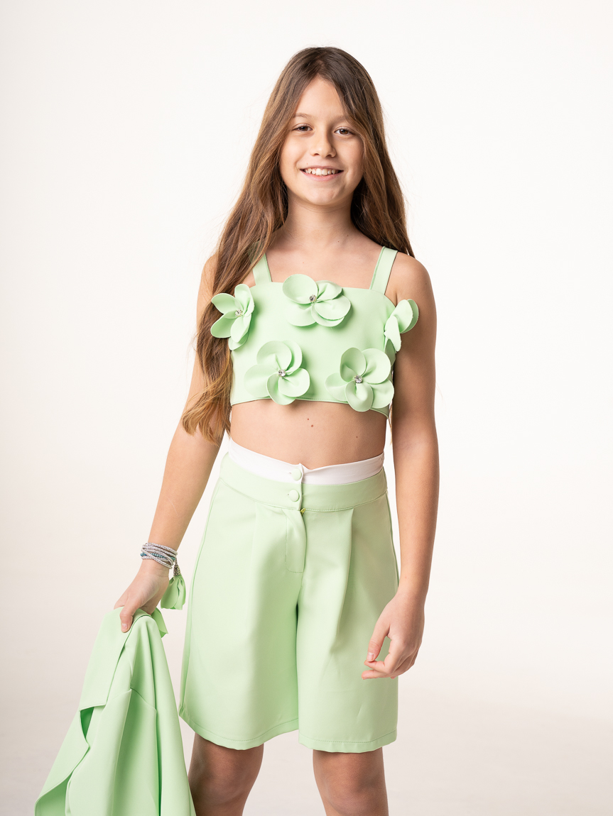 Σετ 3τεμ. Σακάκι βερμούδα με κροποπ με λουλούδια και στρας.Πωλούνται και αξεχώριστα!
