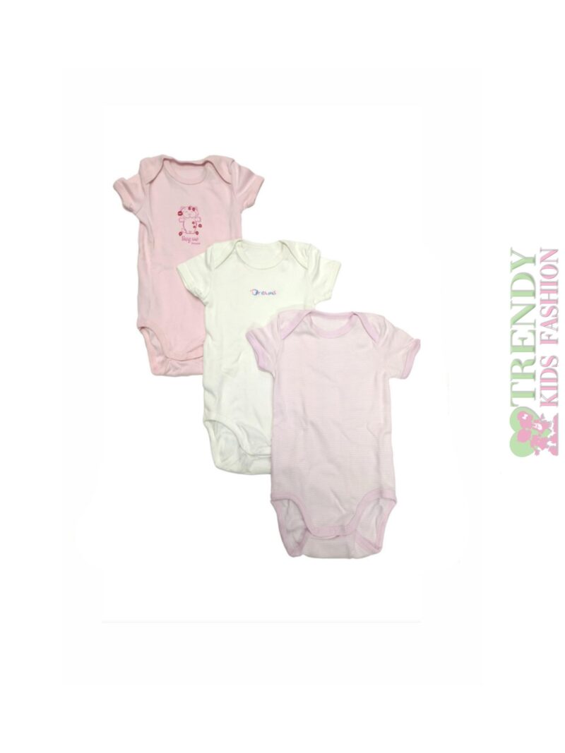 Βρεφικά φορμάκια Happy Cats 3τεμ Λευκό-Ροζ-Ριγέ