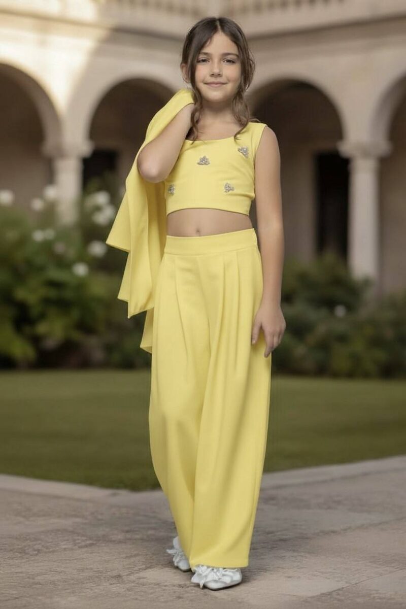 Κοστούμι Σακάκι κοντό και παντελόνι λεμονί χρώμα